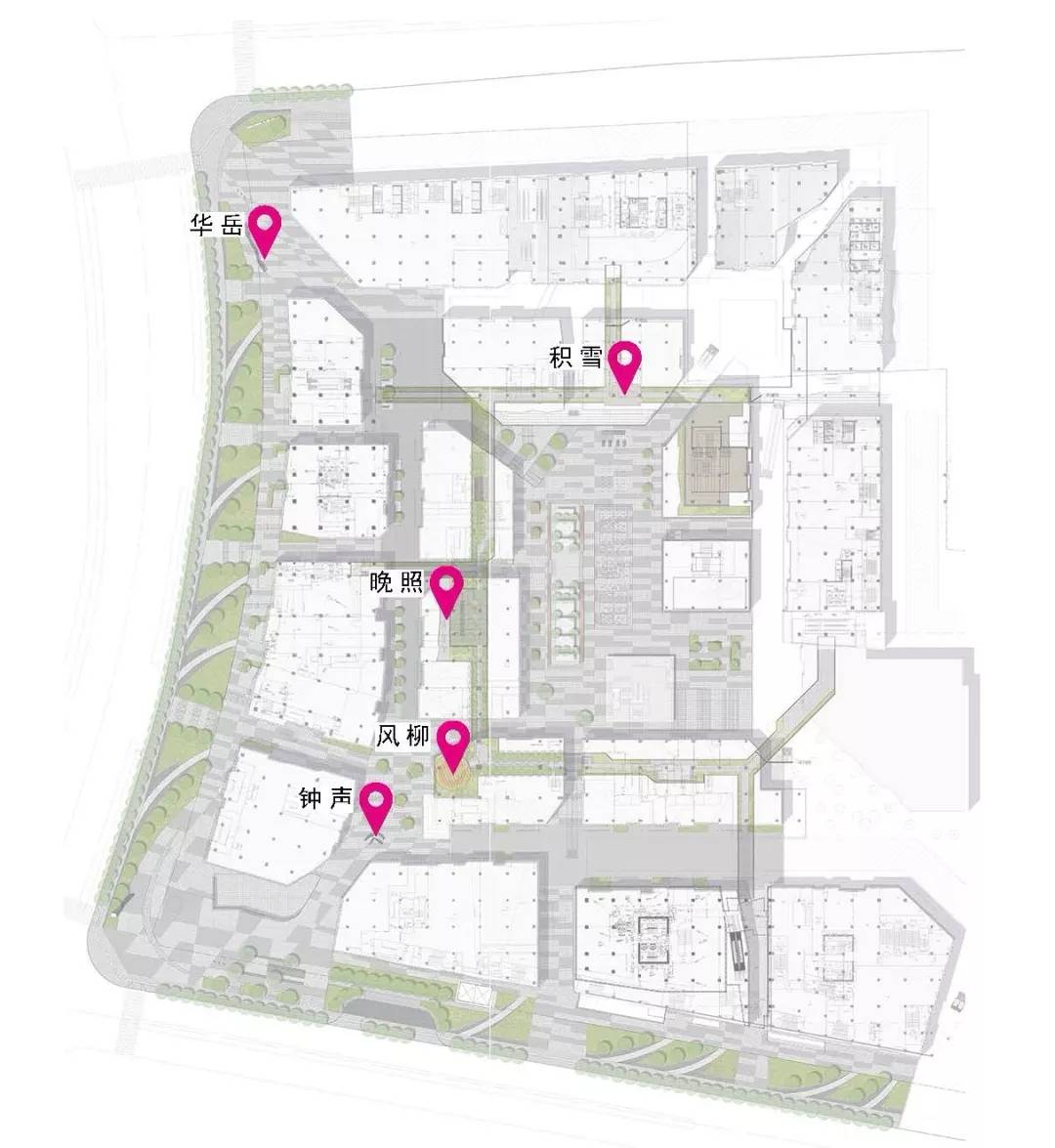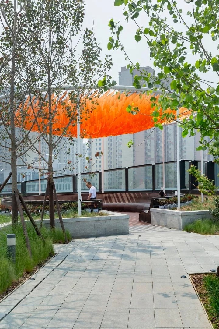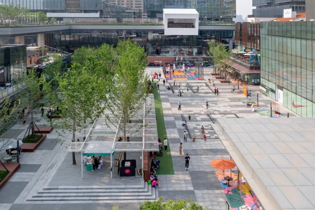 商業(yè)綜合體景觀空間需要考慮到不同時間段不同使用條件下的需求,往往需要做的簡單而有彈性。許多互相矛盾的需求,比如“人少時不顯得空,人多時不顯得擠;夏天喬木不遮擋店面,冬天生機勃勃不顯得太干”常常令設計師比較尷尬——畢竟景觀師不是魔術師,既不能代替營銷策劃各種商業(yè)活動,也不能幫商業(yè)確定業(yè)態(tài),我們能做的是盡量考慮到日常使用的各種可能性,為人提供不同的空間體驗。
