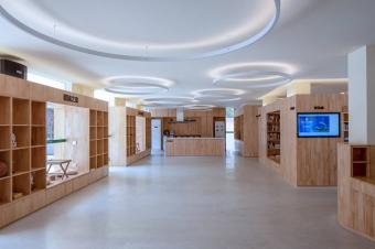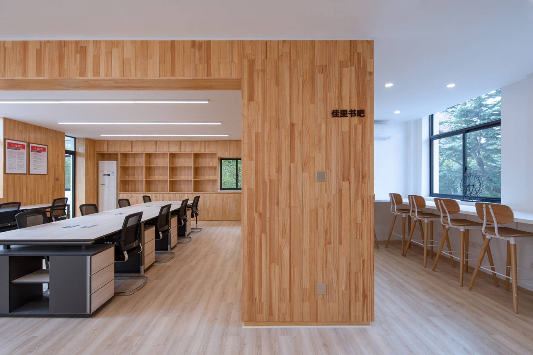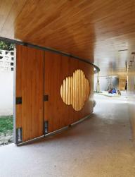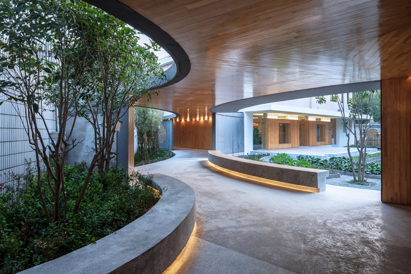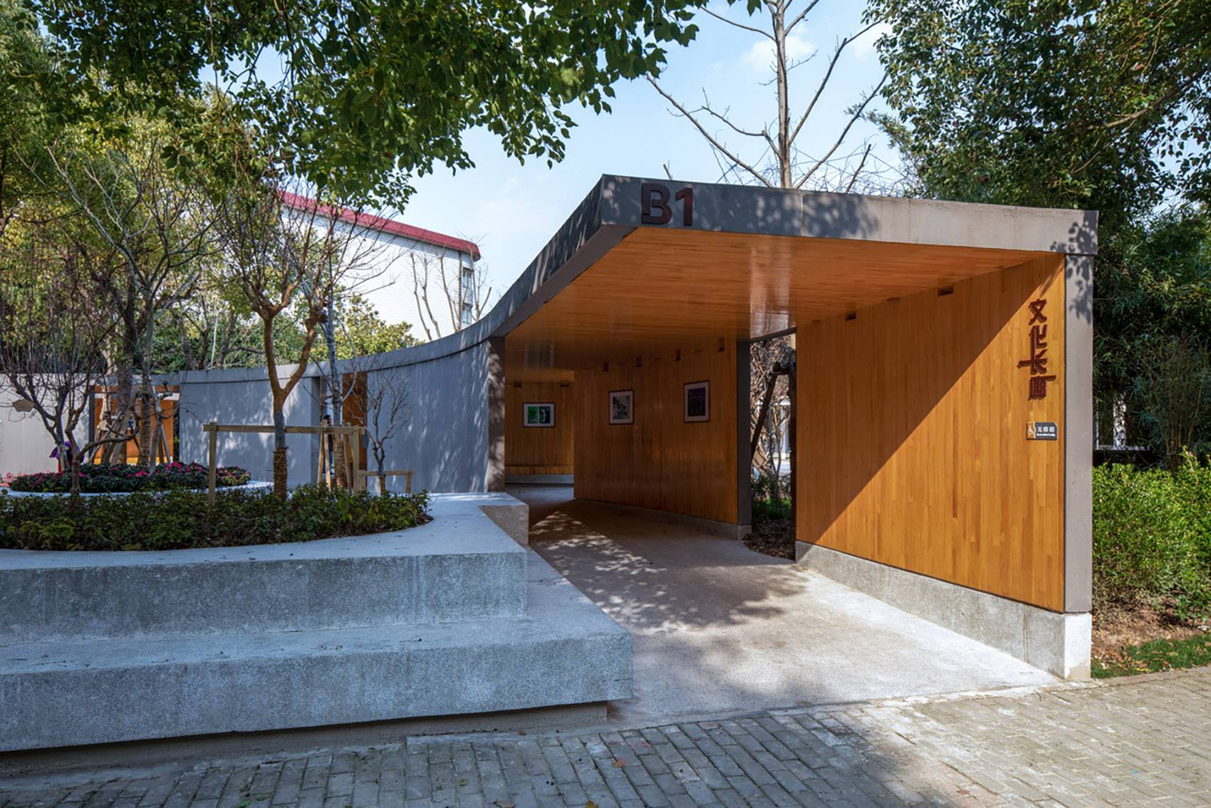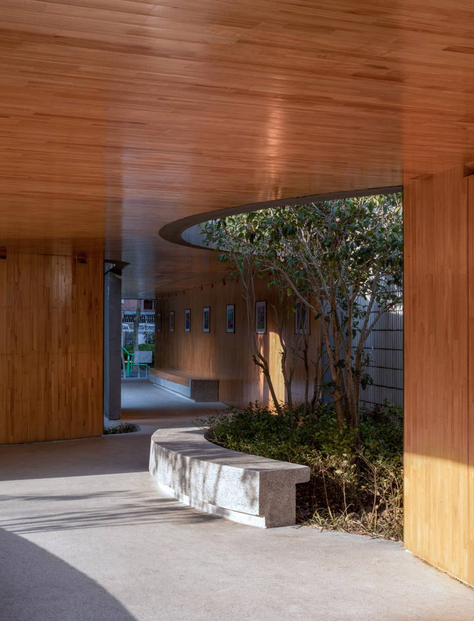 ▼曲廊,間隙處與植物相結(jié)合,內(nèi)部采用木飾面? 田方方