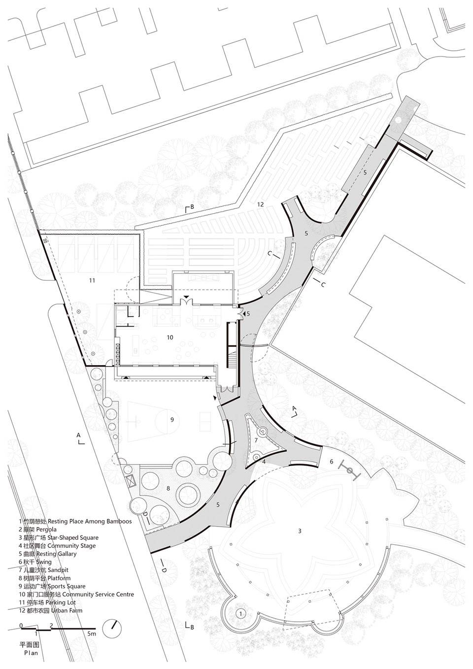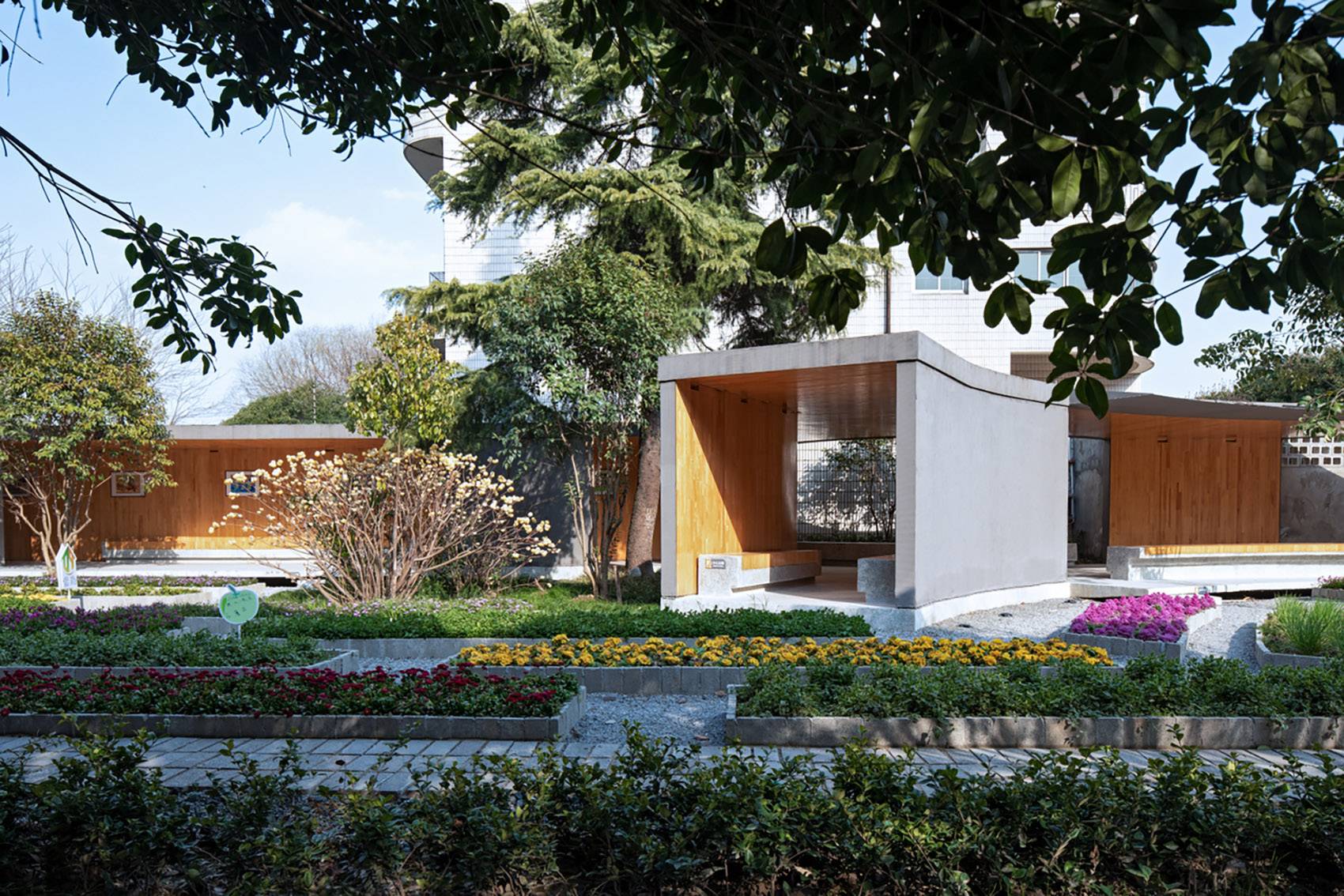 同時(shí)原有居委辦公建筑的底層活動(dòng)室圍墻被打開(kāi),居委背后的綠地開(kāi)辟為都市農(nóng)園,一同納入到曲廊所構(gòu)建的公共空間體系當(dāng)中。