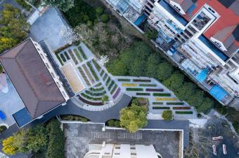 ▼曲廊和都市農(nóng)園,農(nóng)園被納入到曲廊所構(gòu)建的公共空間體系當(dāng)中? 田方方