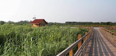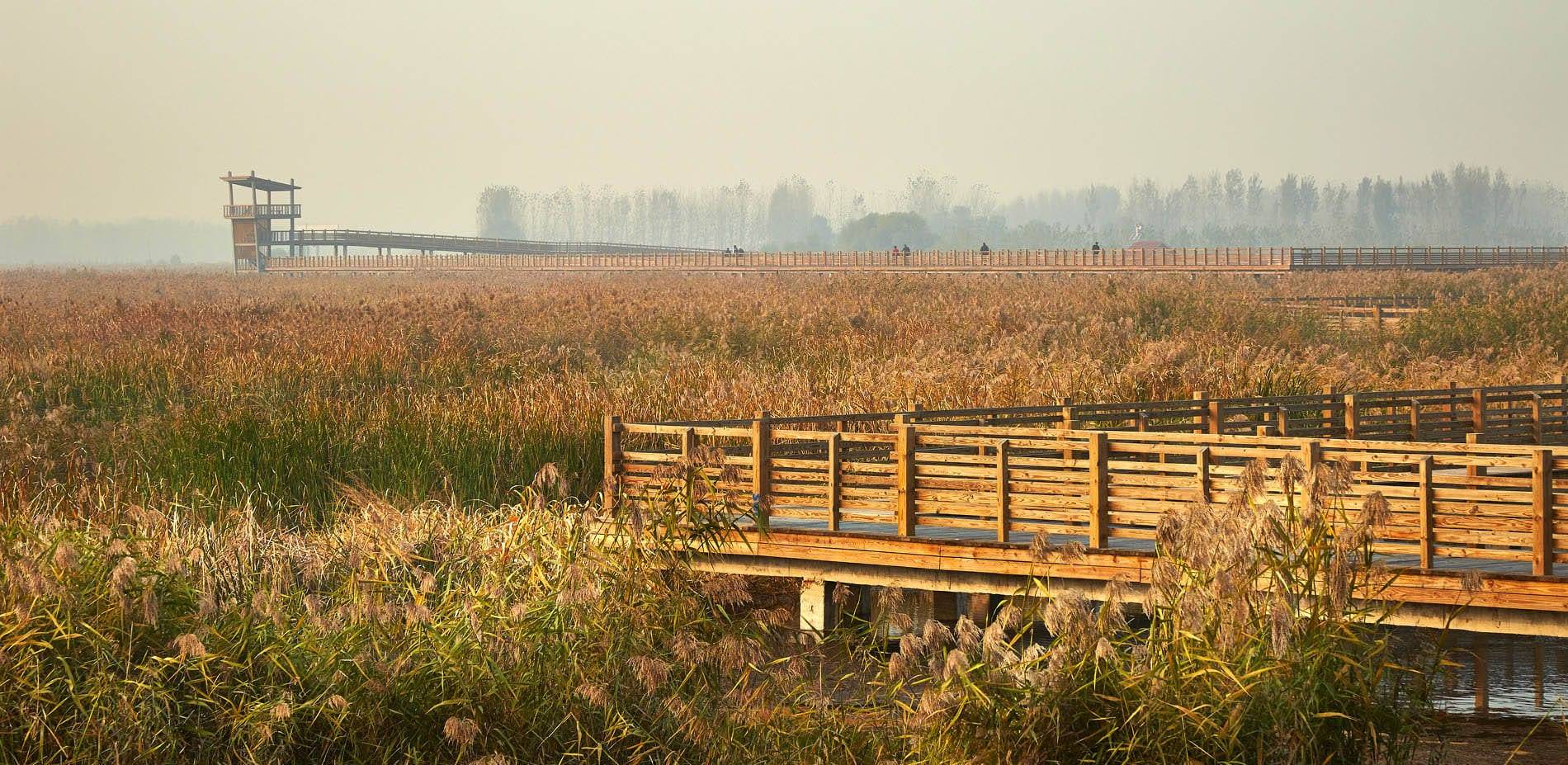 △ 木棧路網(wǎng)和觀景平臺(tái)貫穿整個(gè)基地,為游客營造了多樣而豐富的在蘆葦?shù)睾蜅顦鋮仓g穿梭的景觀體驗(yàn)。