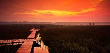 木架構(gòu)成的觀鳥走廊綿延在整個(gè)濕地當(dāng)中。設(shè)計(jì)師將這些木制和鐵制的輕型結(jié)構(gòu)低調(diào)地放置在景觀之中,使其對(duì)區(qū)域的干擾降至最低。基地內(nèi)新建的軟土護(hù)壁由現(xiàn)成的柳條和遺留下來的楊樹樁建造而成。包覆著木樁的枝條生根發(fā)芽之后能夠固定周圍的土壤層。電動(dòng)車道和主要的人行道都由滲透性能極好的碎石路面鋪就;獨(dú)立的小型服務(wù)設(shè)施通過太陽能和風(fēng)能設(shè)備為滿足自身的照明需要提供電力。