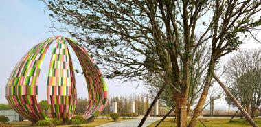 △ 微山湖的荷對(duì)當(dāng)?shù)匚幕徒?jīng)濟(jì)來說具有重要意義。這座專門委托設(shè)計(jì)師設(shè)計(jì)的當(dāng)代雕塑是公園入口的標(biāo)志。