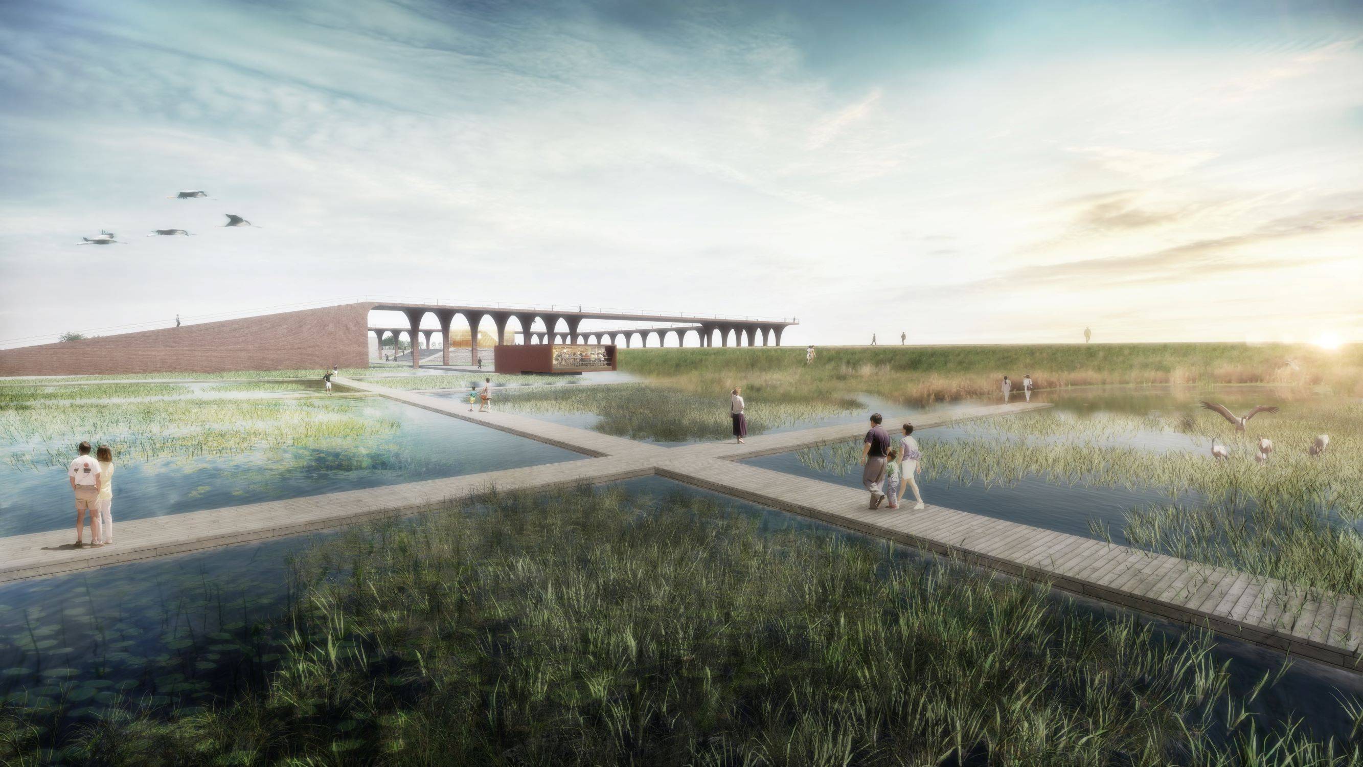 通過堤壩封頂措施利用生物和機械手段對土壤污染進行治理,同時提供了多種植物再生林、濕地和農(nóng)場空間。自然農(nóng)場的位置與主要的農(nóng)業(yè)廊道相呼應,為了保護附近的農(nóng)莊,我們利用場地本身獨特的農(nóng)業(yè)肌理,為想要在周末與假期學習和體驗可持續(xù)農(nóng)業(yè)實踐的觀光客提供了可供其使用的一系列魚塘果園和農(nóng)場景觀的傳統(tǒng)民宿鄉(xiāng)村目的地。