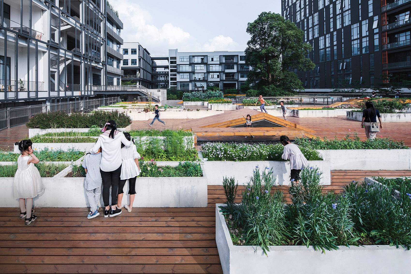 借助地理優(yōu)勢,中國深圳沙井在過去二三十年蓬勃發(fā)展了低端制造產(chǎn)業(yè)。大量工廠的建設(shè)吞噬原有優(yōu)美的濕地和農(nóng)田。這些低端制造產(chǎn)業(yè)衍生的工廠園區(qū)粗暴迅猛地在城市邊緣無序擴(kuò)張。工廠園區(qū)和外部的城市空間都形成消極的場所。近幾年,基地所在的工業(yè)園區(qū)的周邊建設(shè)了許多住宅和配套的學(xué)校。此項(xiàng)目希望通過綠色人文空間的重塑,為園區(qū)工作的人、周邊的居民、學(xué)校里老師學(xué)生、以及種植愛好者提供一個有活力的公共活動交流的場所。同時,通過組織各類體驗(yàn)式活動,沙井傳統(tǒng)的種植文化以新的方式傳承下去并成為社區(qū)營造的媒介。