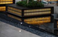 ▲景觀會客廳廊架經(jīng)過了多輪推敲,白色系,銅色系在來回中比較,框架在厚重,輕巧還是折中里探討,最終選取了同建筑的銅色系,隔扇與主入口大門統(tǒng)一