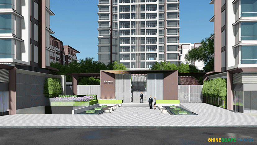 ▲門廳的造型提取建筑框架的形式,延展,飄浮的感覺,通過比例的推敲,把左右商鋪建筑,圍墻,消防大門形成統(tǒng)一的細(xì)節(jié)考量和布局匠心推敲!然而,再次,然而!!!由于規(guī)劃風(fēng)險,前期的工期導(dǎo)致后期景觀施工時間緊張,在出完施工圖修改3輪和工程已招標(biāo)后,遺憾的取消了景觀設(shè)計的門廳,換成了建筑的成品門廳