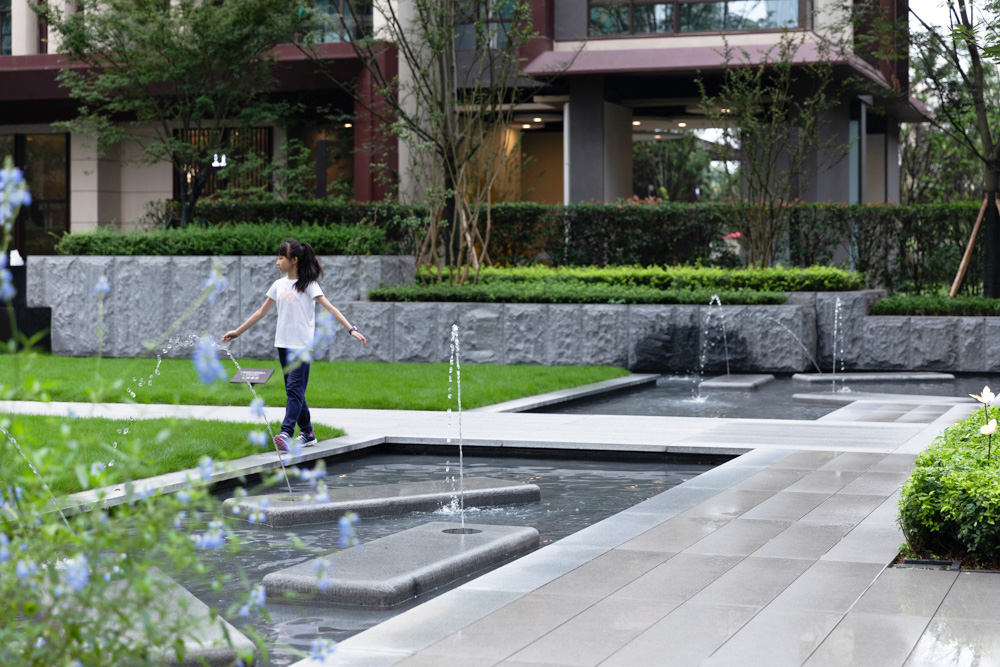 一個中央水院主花園+3個功能板塊+幾個洋房留白院子。“3+X”模塊的研發(fā),充分發(fā)揮出標(biāo)準(zhǔn)化模塊的優(yōu)勢.3即一個兒童活動區(qū),一個成人健身區(qū),一個環(huán)跑道,“X”即多個有特色性的小空間.兒童活動區(qū)和一個成人健身區(qū),采用龍湖標(biāo)準(zhǔn)化集采產(chǎn)品,保證園區(qū)造價的可控性。