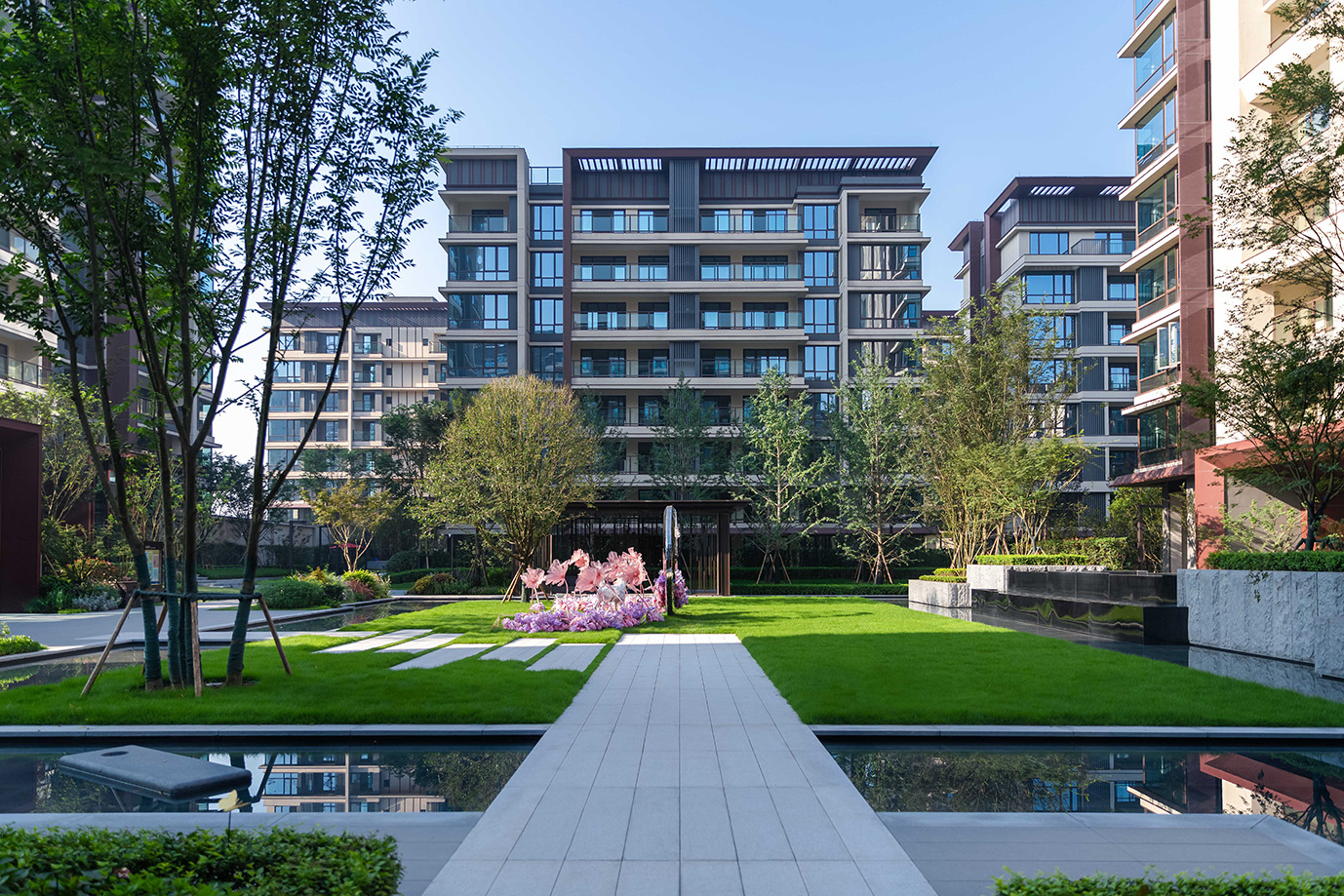 客戶訴求:開元晶藍(lán)這個案子,委托方在設(shè)計之初就明確指出:由于政府限定實景現(xiàn)房銷售,景觀和建筑都是實景高品質(zhì)呈現(xiàn)在客戶面前;建筑風(fēng)格區(qū)別周邊產(chǎn)品,為當(dāng)代風(fēng)格,景觀的調(diào)性要往當(dāng)代自然風(fēng)格的調(diào)性走, 跳出早期西式洋房風(fēng)格.內(nèi)側(cè)全洋房產(chǎn)品,樓間距有限,留下的綠地空間極其有限。于是這種低密度產(chǎn)品,對私密性的要求極高,同時盡量避免大的廣場。