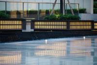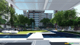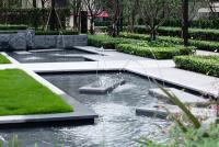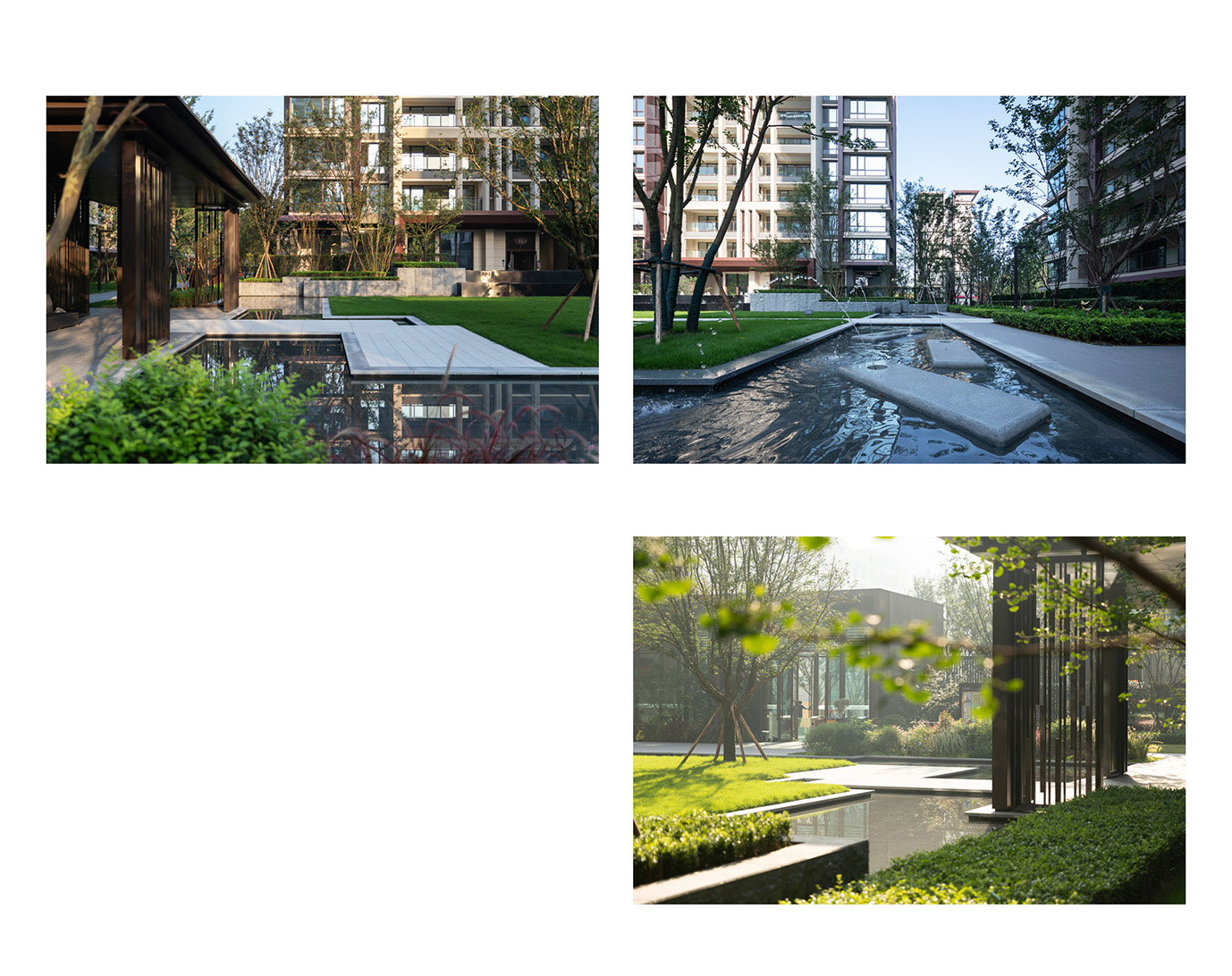▲晶藍(lán)地塊的中央水院自從方案定下后,基本沒有過多改動,擴初的推敲在于池邊景觀會客廳廊架和主疊水的溢水細(xì)節(jié)