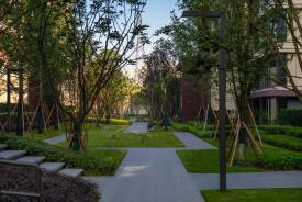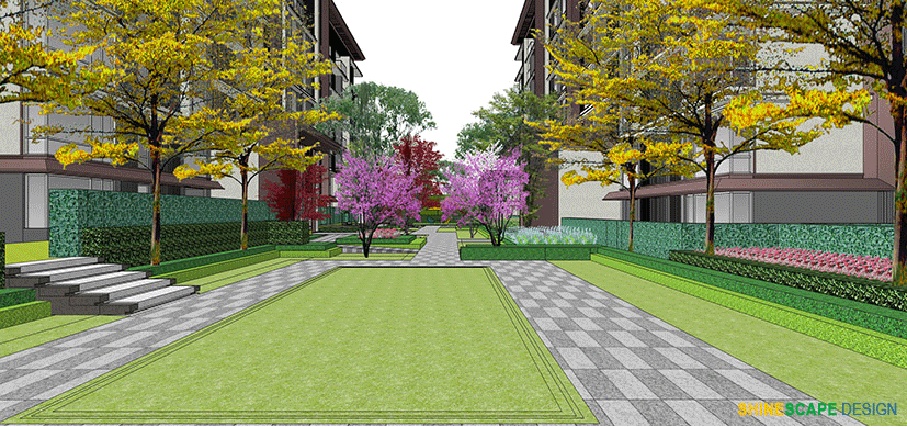 ▲洋房區(qū)的硬景在擴初階段確定后,基本變化不大,但軟景雖然景觀經(jīng)過擴初圖紙,施工圖紙造價的嚴(yán)格控制,但后期仍然設(shè)計成本超出,于是甲乙雙方和施工方共同推敲,苗木的替換,在模型是對喬木和灌木作了嚴(yán)格推敲,最終實施的效果較為可控!