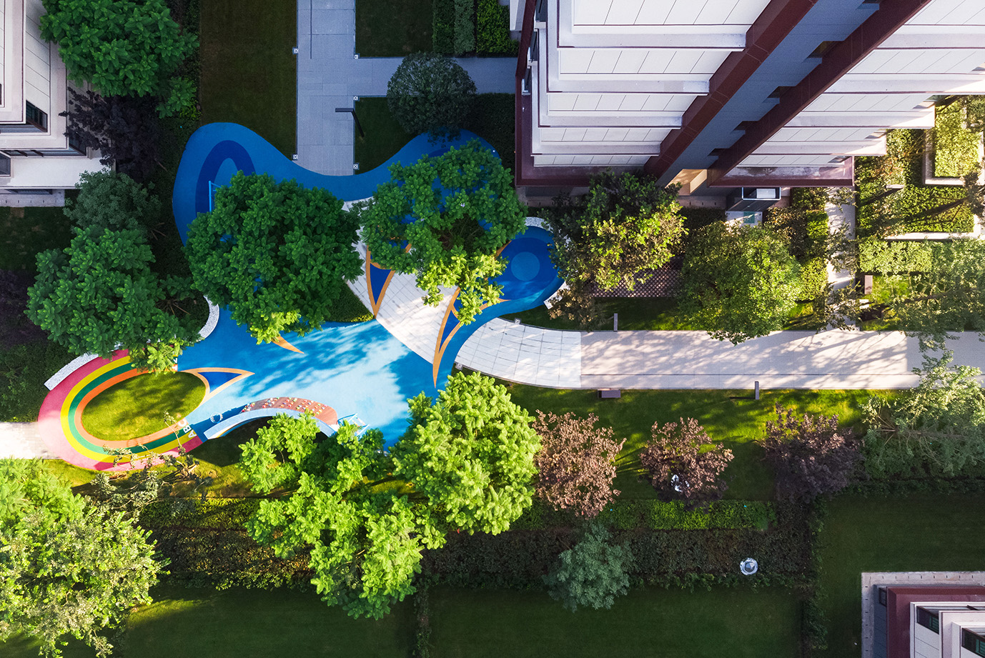 如成長的律動曲,森林主題昆蟲樂園;延伸至戶外的架空層室內(nèi)親子主題游樂場,無不穿梭于兒童成長的時光中,帶來永恒的記憶。兒童活動區(qū)和健身區(qū)采用龍湖標(biāo)準(zhǔn)化集采產(chǎn)品,保證園區(qū)造價的可控性。一個中央水院主花園+3個功能板塊+幾個洋房留白院子?!?+X”模塊的研發(fā),充分發(fā)揮出標(biāo)準(zhǔn)化模塊的優(yōu)勢。