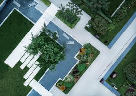 ▲斜坡上的“回轉(zhuǎn)廊道”,消防登高面上的“滯留地”,形成洋房留白特色花園