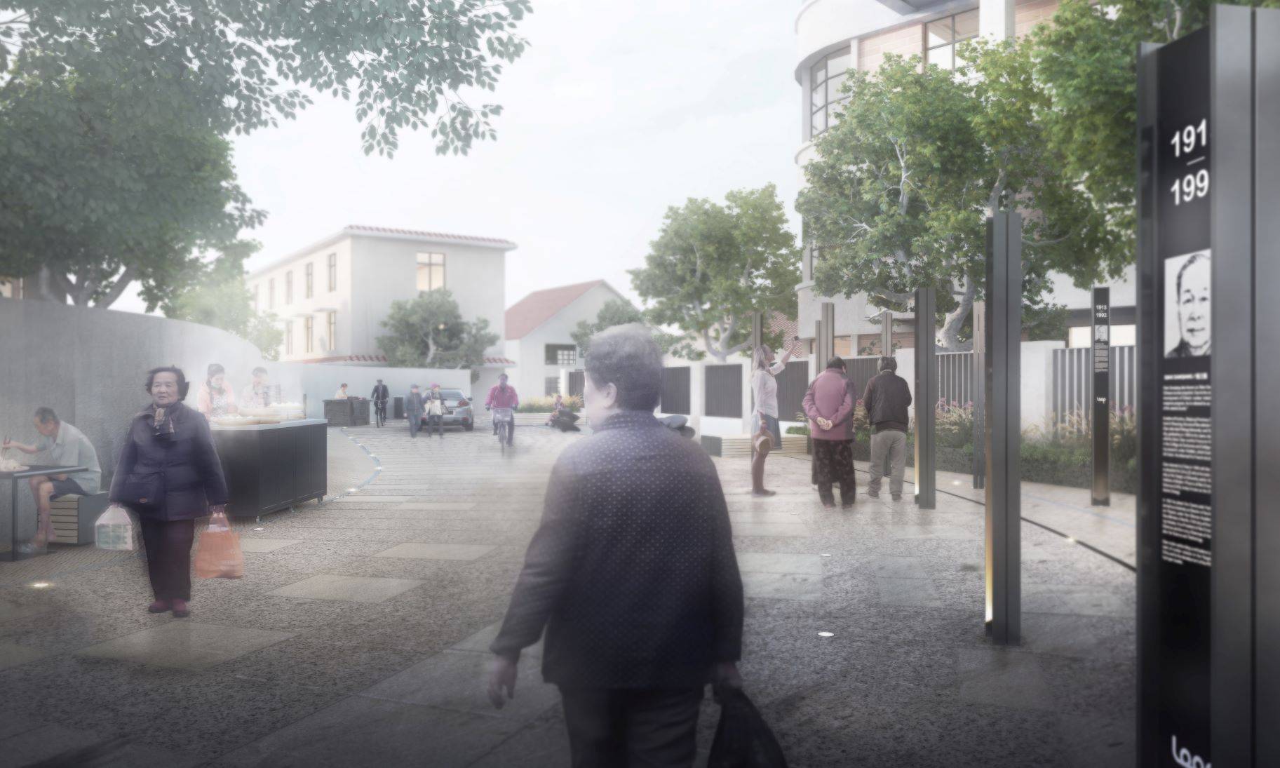 進(jìn)入社區(qū)后,“雕塑森林”用來展示里弄的歷史,來講述發(fā)生在愚園路社區(qū)的名人趣事。小廣場(chǎng)為居民和游客提供了一個(gè)休閑和交友的場(chǎng)所。