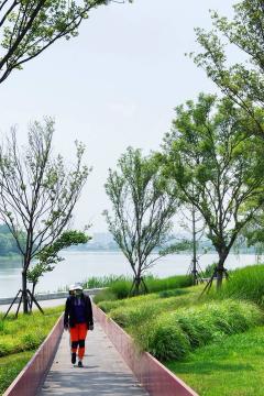 歷經(jīng)近五年的時(shí)間,江心洲公園正一點(diǎn)一點(diǎn)地融入居民的日常。從原本荒蕪的堤壩蛻變成富有活力的公園,人們在公園里跑步、耍太極、騎行、玩輪滑,在樹下乘涼,孩子們在游戲場攀爬、追逐,一家人可以在這里感受城市對自然的關(guān)懷,時(shí)光的流轉(zhuǎn),還有江心洲未來發(fā)展的方向。