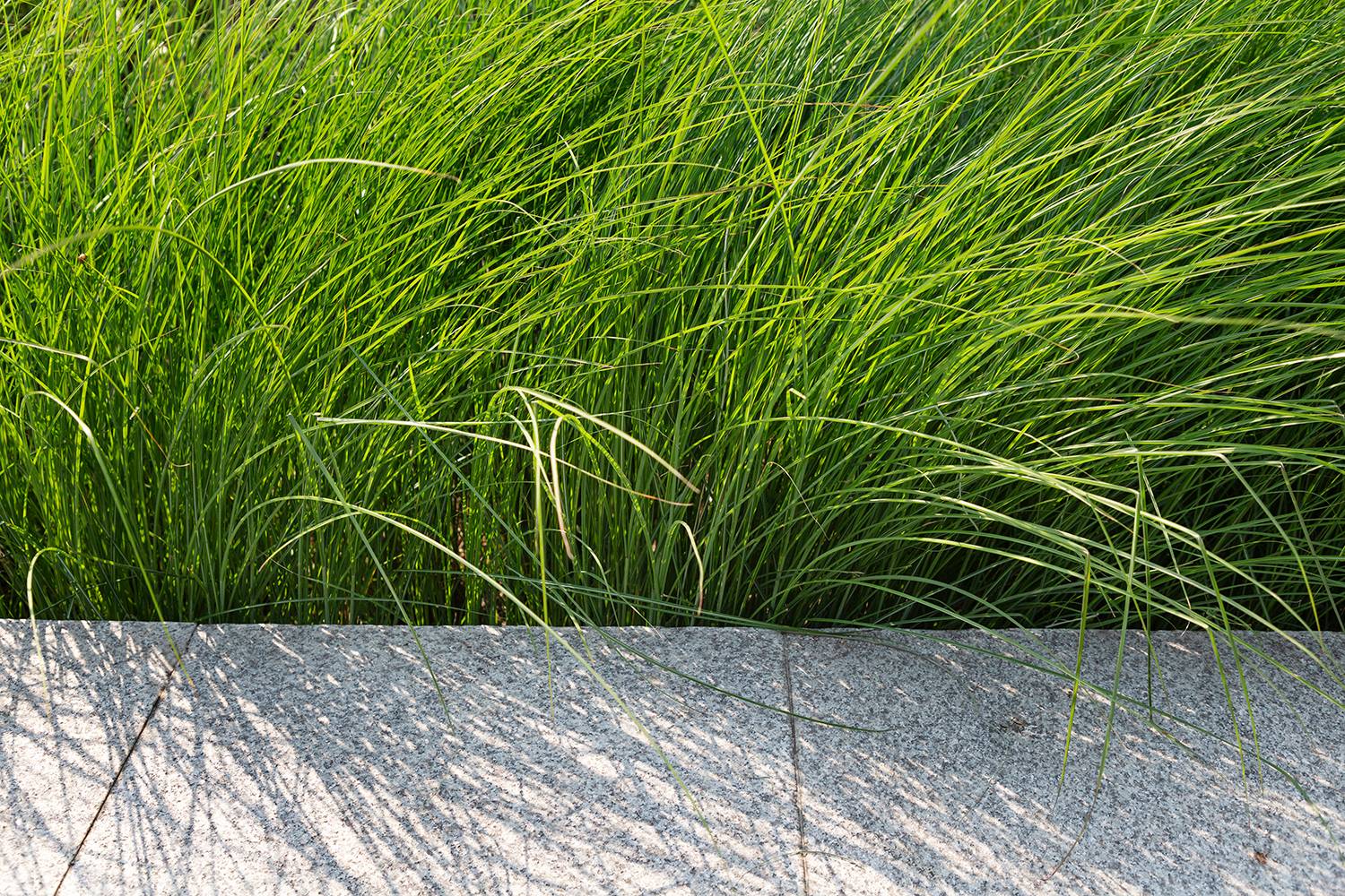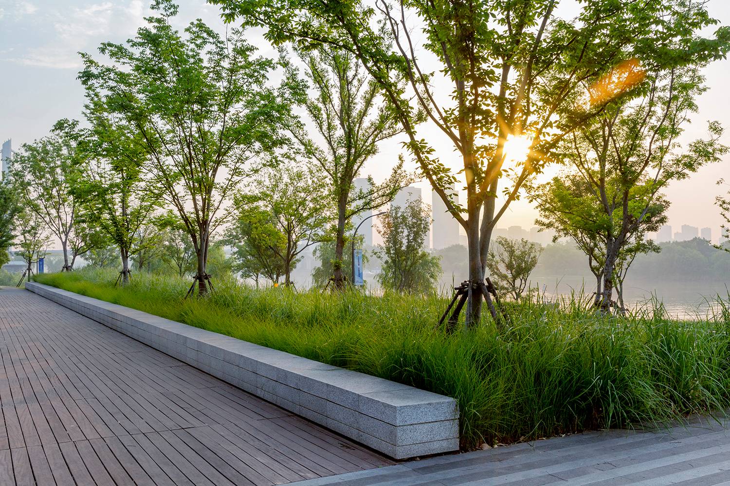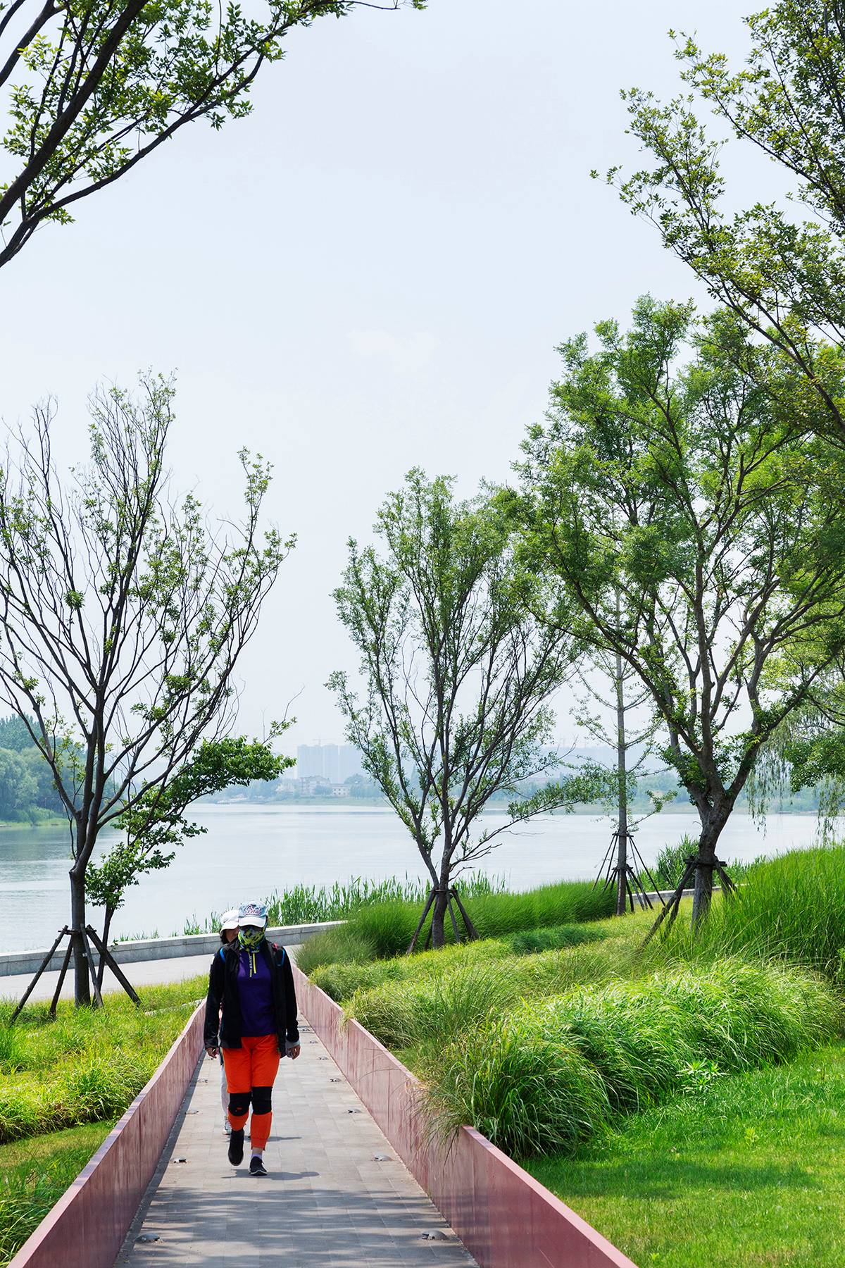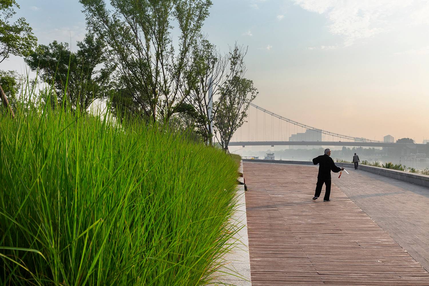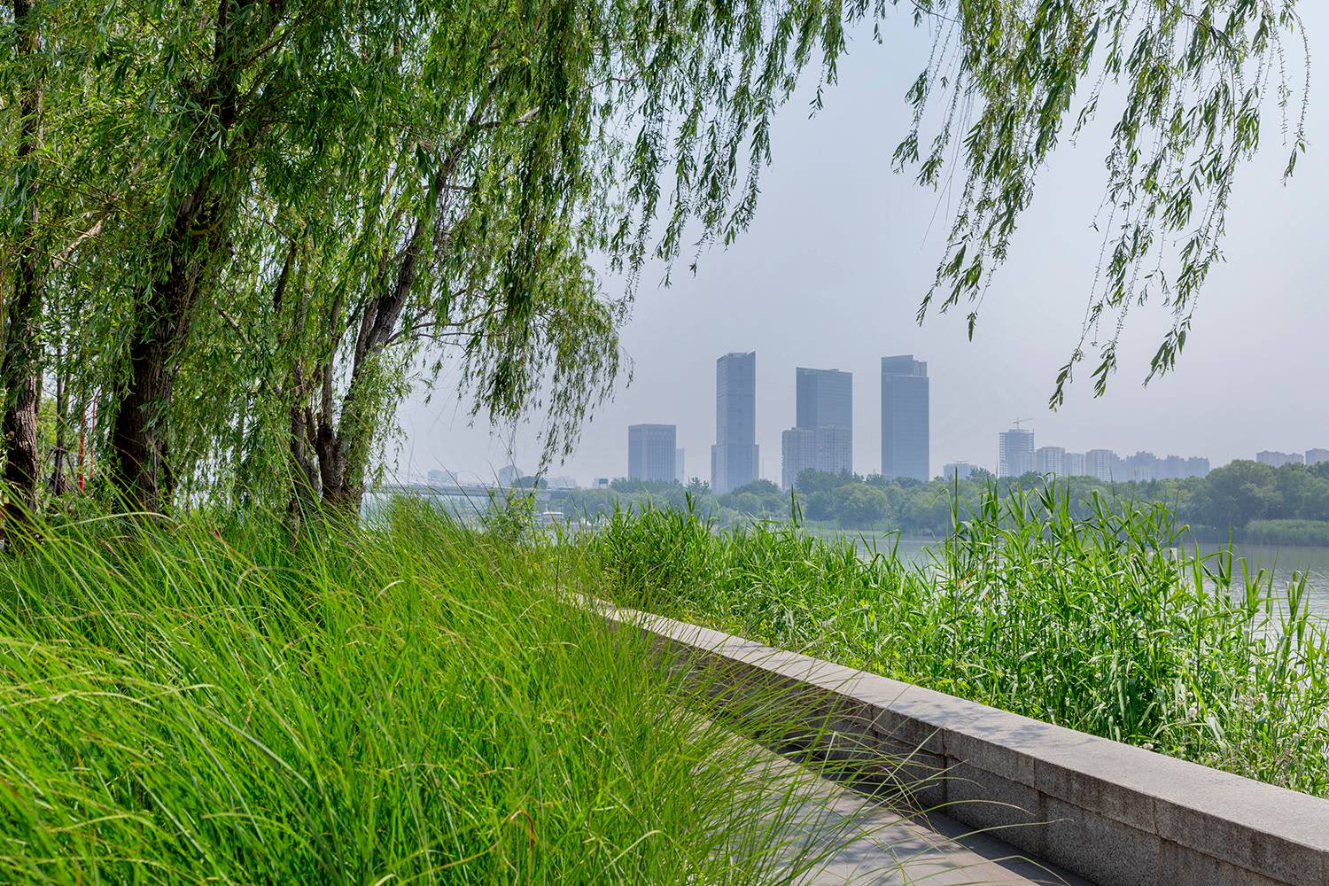 我們在疊級(jí)草臺(tái)上分層種植了細(xì)葉芒、蘆葦、矮蒲葦、狼尾草,同時(shí)保留了原有的所有柳樹,恢復(fù)了歷史上楊柳依依,芳草萋萋的沿江風(fēng)貌。