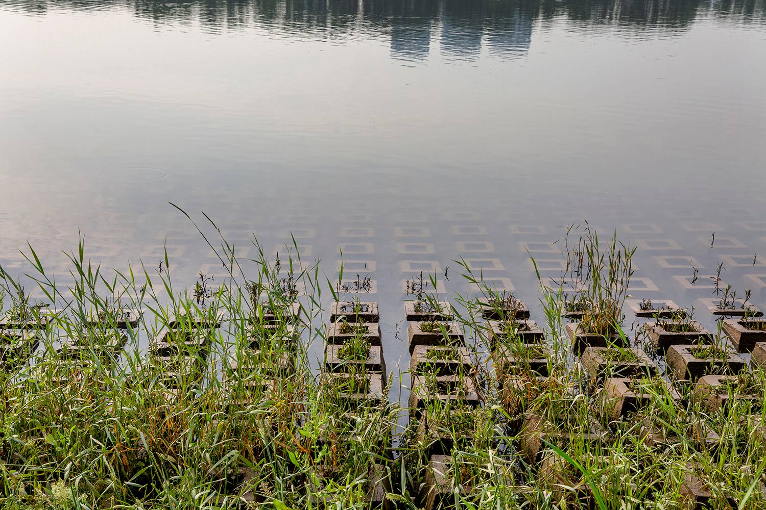 在過去幾十年里,為了島內(nèi)的農(nóng)業(yè)安全,工程師建造了由拋石、混凝土植草格、格梗構(gòu)成的斜坡狀防汛堤壩。但是這樣單一的地表構(gòu)造在一定程度上不僅阻斷了濱水帶生態(tài)物種交流,同時(shí)使得暴雨季節(jié)里大量的地表徑流無法下滲,而是直接流入江中,削弱了駁岸的雨洪調(diào)節(jié)能力,對長江的水質(zhì)也造成了威脅。