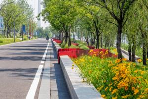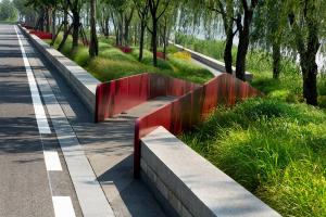 防汛道路同時(shí)被賦予了舉辦馬拉松及環(huán)島自行車賽事的功能,連續(xù)的坐墻不僅在日常中提供休憩,在比賽時(shí)也提供更多的位置供人們觀賽。