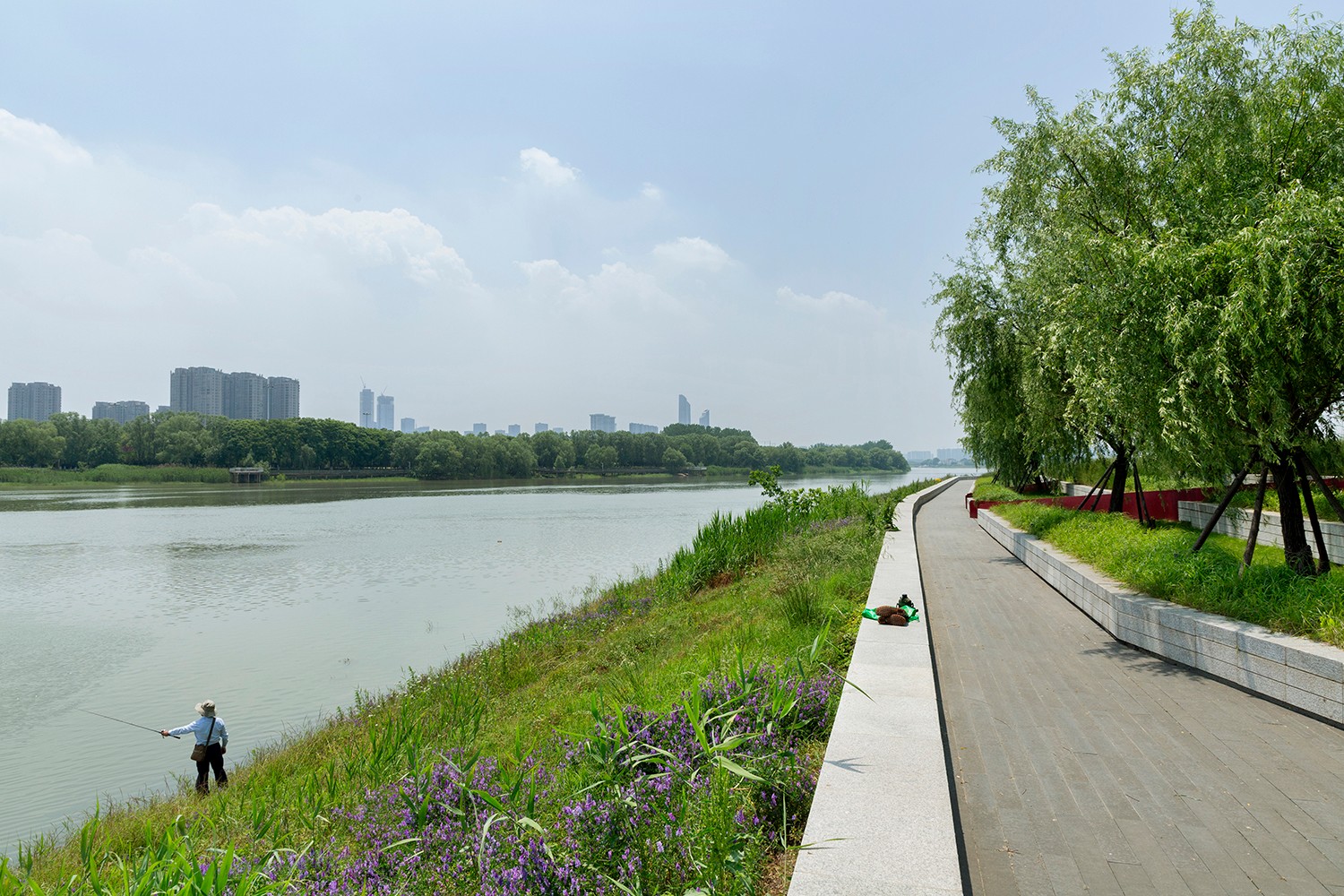 項(xiàng)目基地原本只是用作江心洲的防汛堤壩,如今成為一座具有活力的沿江公園。我們在既有的堤壩基礎(chǔ)上,修復(fù)生態(tài)缺陷,改善沿江風(fēng)貌,注入新的休閑活動(dòng)功能,將這片在過去幾十年里無人問津的土地發(fā)展成了江心洲重要的資源。