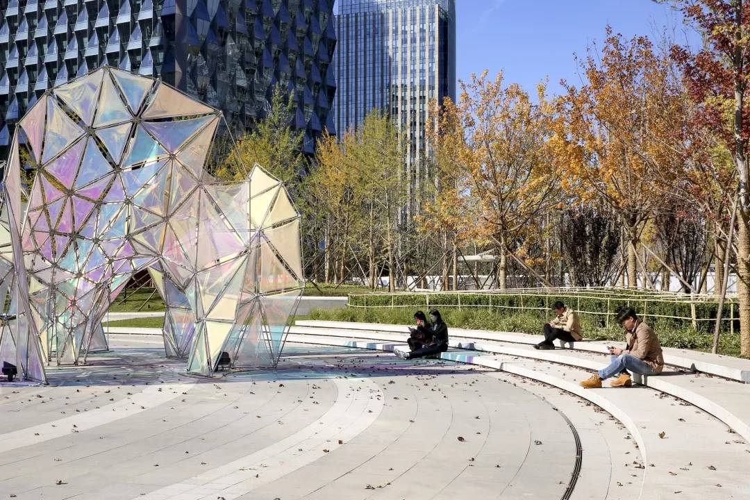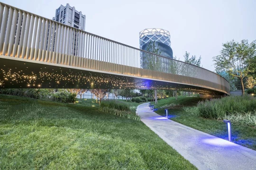 而戶外劇場、兒童樂園、休閑運動場地、景觀廊架等人性化場所有序分布在整個生態(tài)藝術(shù)綠廊內(nèi),幫助人們在工作生活之余減輕壓力、自我修復(fù),讓人與自然更好地和諧共生。