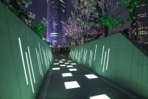 此外,新穎有趣的踏板發(fā)電廊道是這里的另一大亮點。AECOM設(shè)計團(tuán)隊采用景觀與發(fā)電相結(jié)合,將行人踩踏地磚的動能轉(zhuǎn)化為電能,與道路景觀側(cè)墻LED互動照明。這一融娛樂、休閑及體驗于一體的全新創(chuàng)意,不僅是智慧節(jié)能新方式,更成為了孩子們感受科技魅力的天堂。