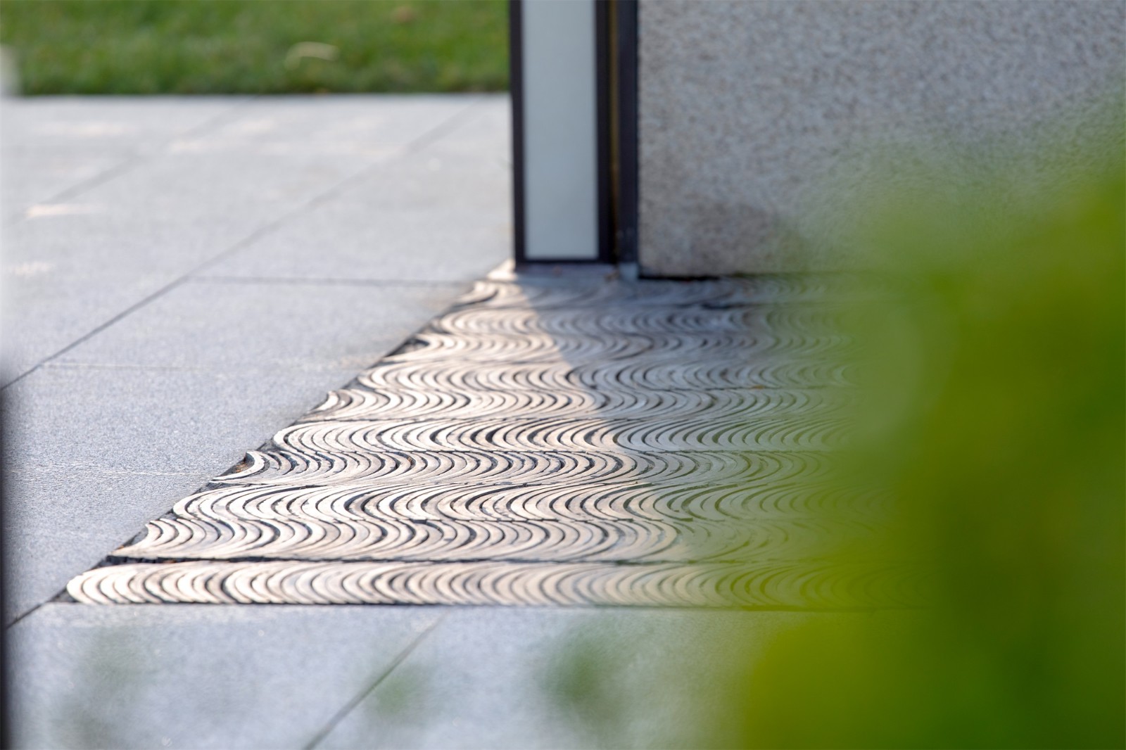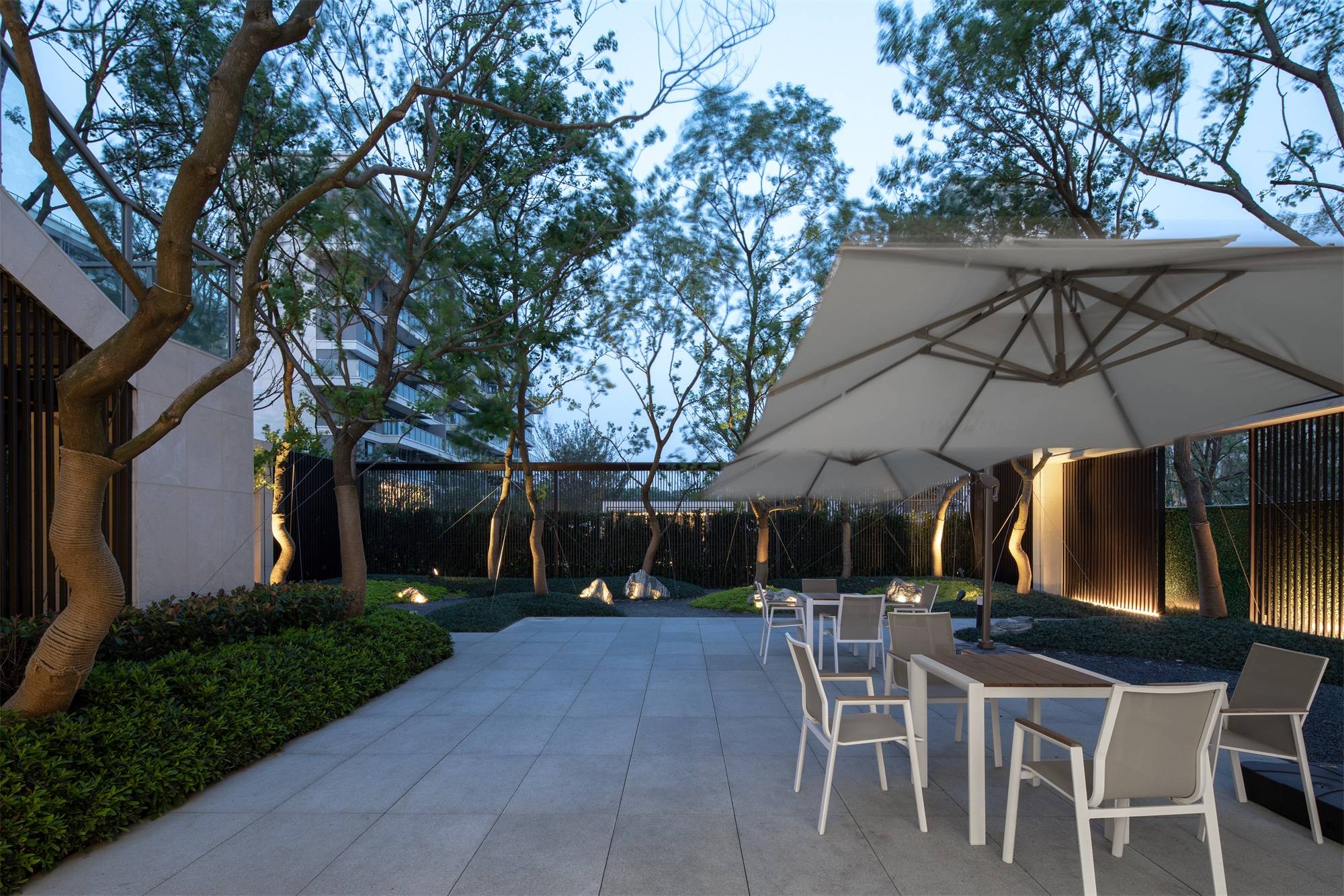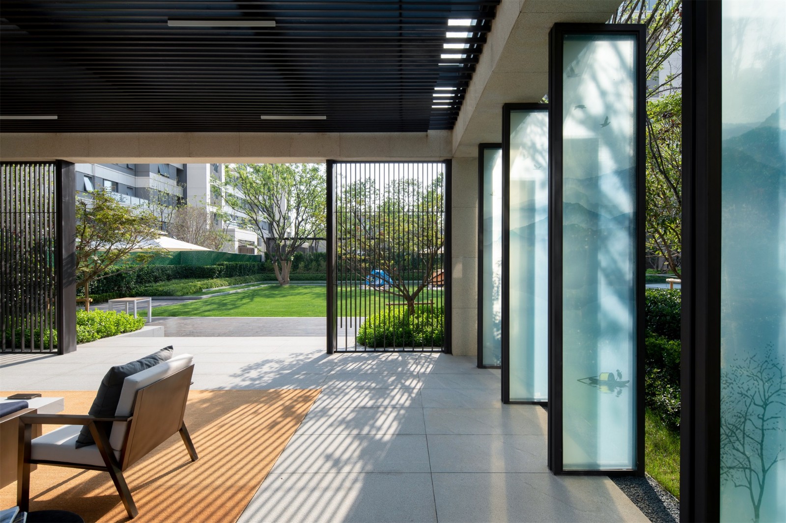 賦予每個(gè)細(xì)節(jié)靈魂。在景觀廊架中雕刻鏤空?qǐng)D案的鐵藝屏風(fēng)將景觀空間進(jìn)行分隔,從而打造最適宜的立面尺度,豐富空間層次感。