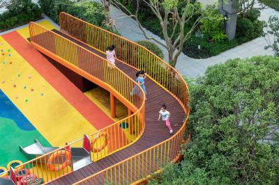 兒童活動(dòng)場(chǎng)地以“水鄉(xiāng)探險(xiǎn)”為主題。船頭、地圖等趣味性活動(dòng)設(shè)施,豐富的地形起伏,舳艫乘風(fēng),為兒童打造一個(gè)生動(dòng)的童年夢(mèng)。