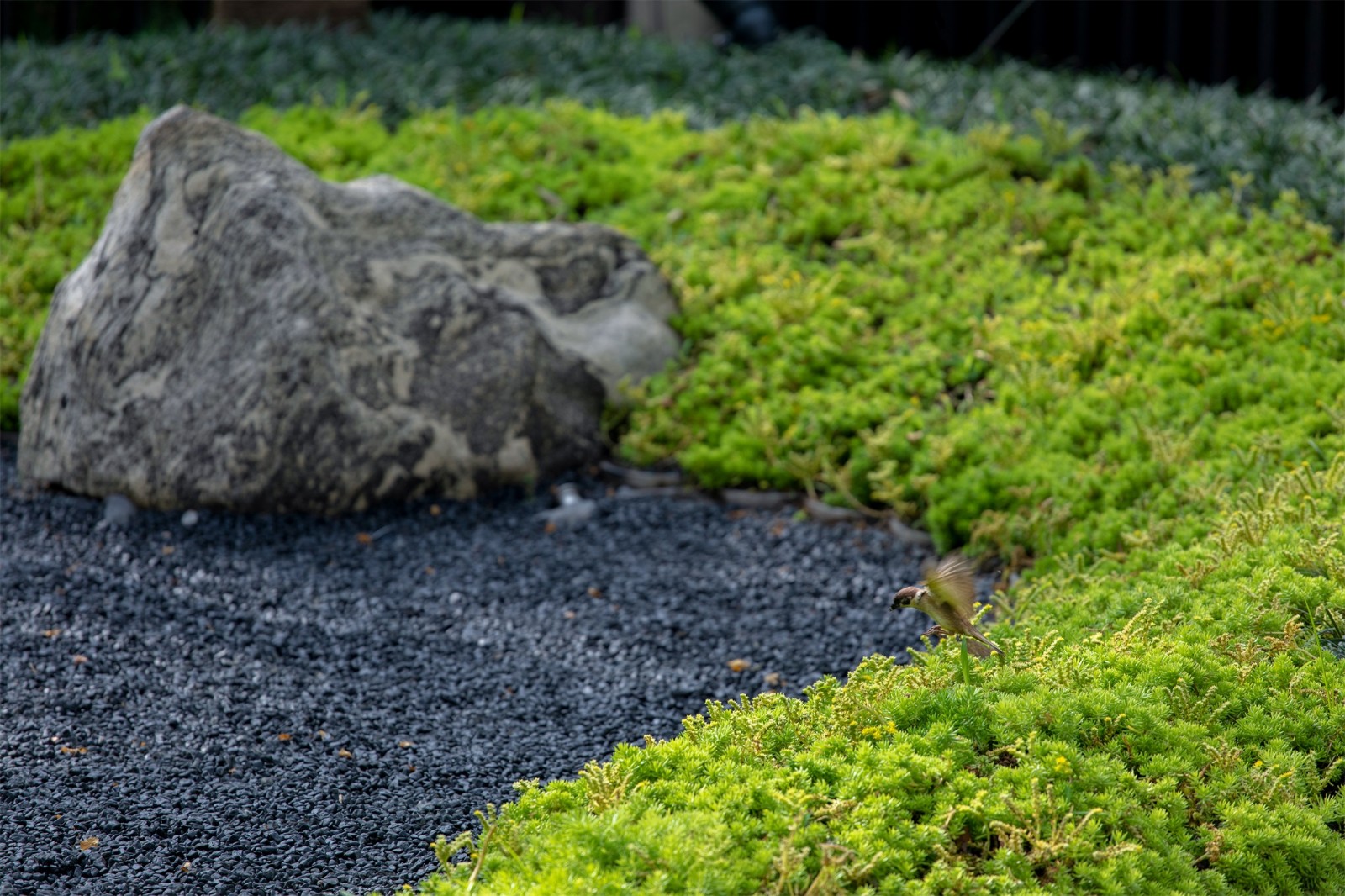 光中的烏桕林,樹(shù)與倒影相映成趣,底部的禪意枯山水景觀,與高高在上的烏桕虛實(shí)穿插、疏密相間、高低生姿。傍晚微風(fēng)吹過(guò)發(fā)出的窸窣聲,揭起了一層神秘面紗。