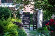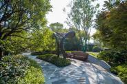 依照因地適宜的原則,設(shè)計(jì)師最大化地保留原有生長(zhǎng)狀況良好的喬木,并在邊緣區(qū)域利用多層次植物設(shè)計(jì)遮擋舊圍墻,豐富景觀效果。在茂密的植株下方,設(shè)計(jì)師設(shè)置了雅致的休憩平臺(tái),使得戶外行走的居者在炎熱的夏天也可尋得一絲清涼。