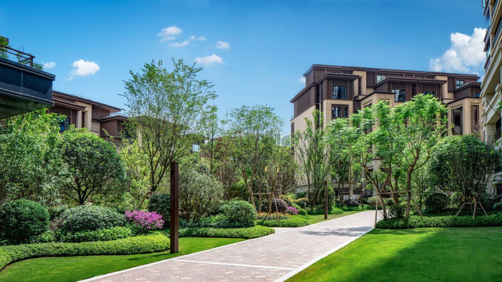 在花樣年香門第項目中,我們以東方意境之筆法,描繪逸境山林的空間感受。在尊重人的體驗感受的前提下,造一座情景花園,給生活預(yù)留自然的出口,出門即是自然。