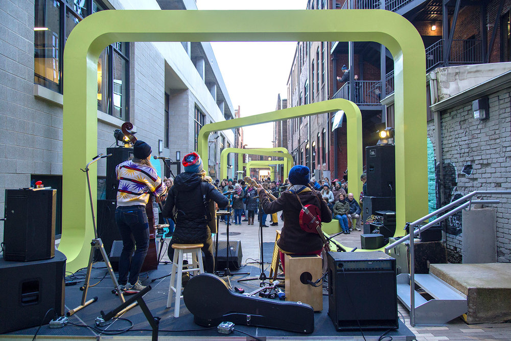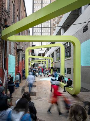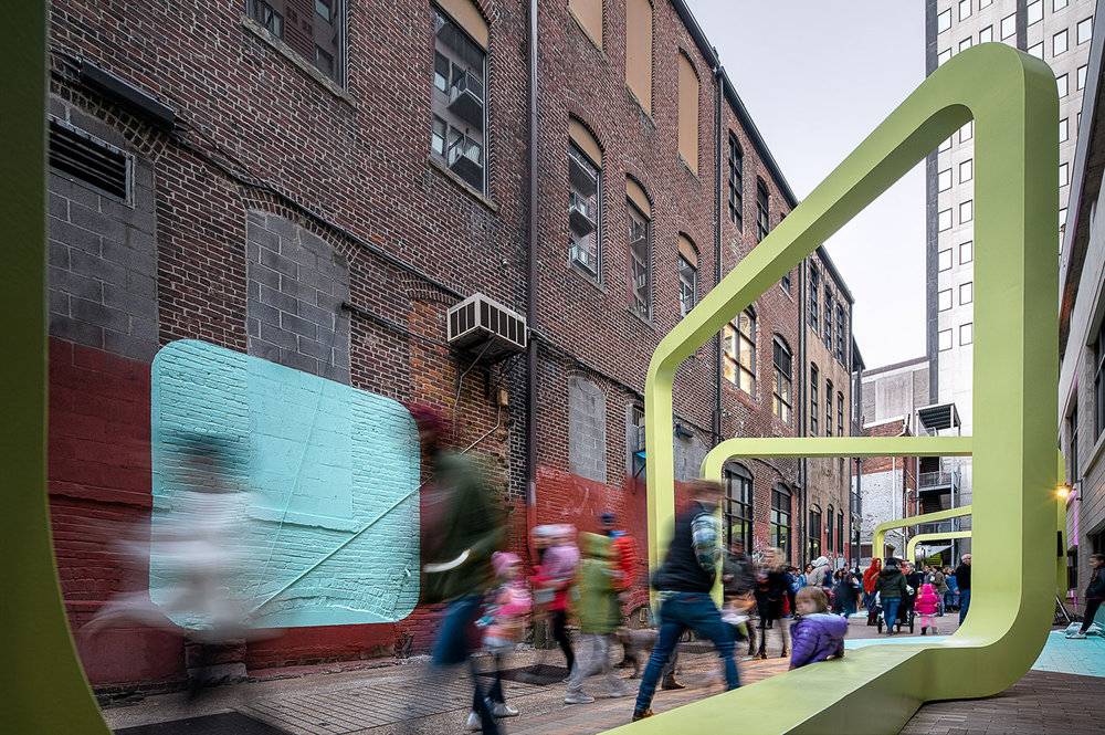 City Thread項目由SPORTS事務(wù)所設(shè)計,是位于美國田納西州查特怒加市的城市戶外裝置,并在 < Passageways2.0>國際競賽中獲勝,將城市內(nèi)被忽略廢棄的6,200平方英尺的小巷改造成了充滿活力的城市空間。