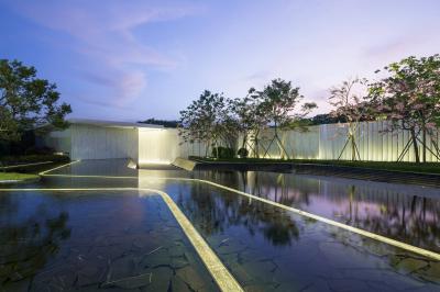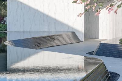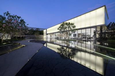 在東江沿岸,設(shè)計團(tuán)隊以“悅水、境水、拂水、沁水”為景觀概念,將場地以曼妙的方式展示現(xiàn)代藝術(shù)館的精美。
