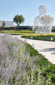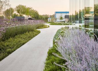 綠地或沙丘主要由灌木和多年生草本植物覆蓋而成,這些植物四季常綠,但同時擁有微妙的季節(jié)性變化,如矮生栒子從春天開花到冬天結(jié)出紅色的果實。其中還有更多隨季節(jié)性改變的植物,如馬鞭草或濱藜葉分藥花,以及一些草,如白茅中的’紅色男爵’,可以從春天一直繁茂到秋天,而等到冬天綠葉凋敝,則會凸顯出其它品類的常綠灌木,尤其是品種不同、藍(lán)綠各異的刺柏。