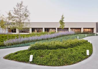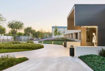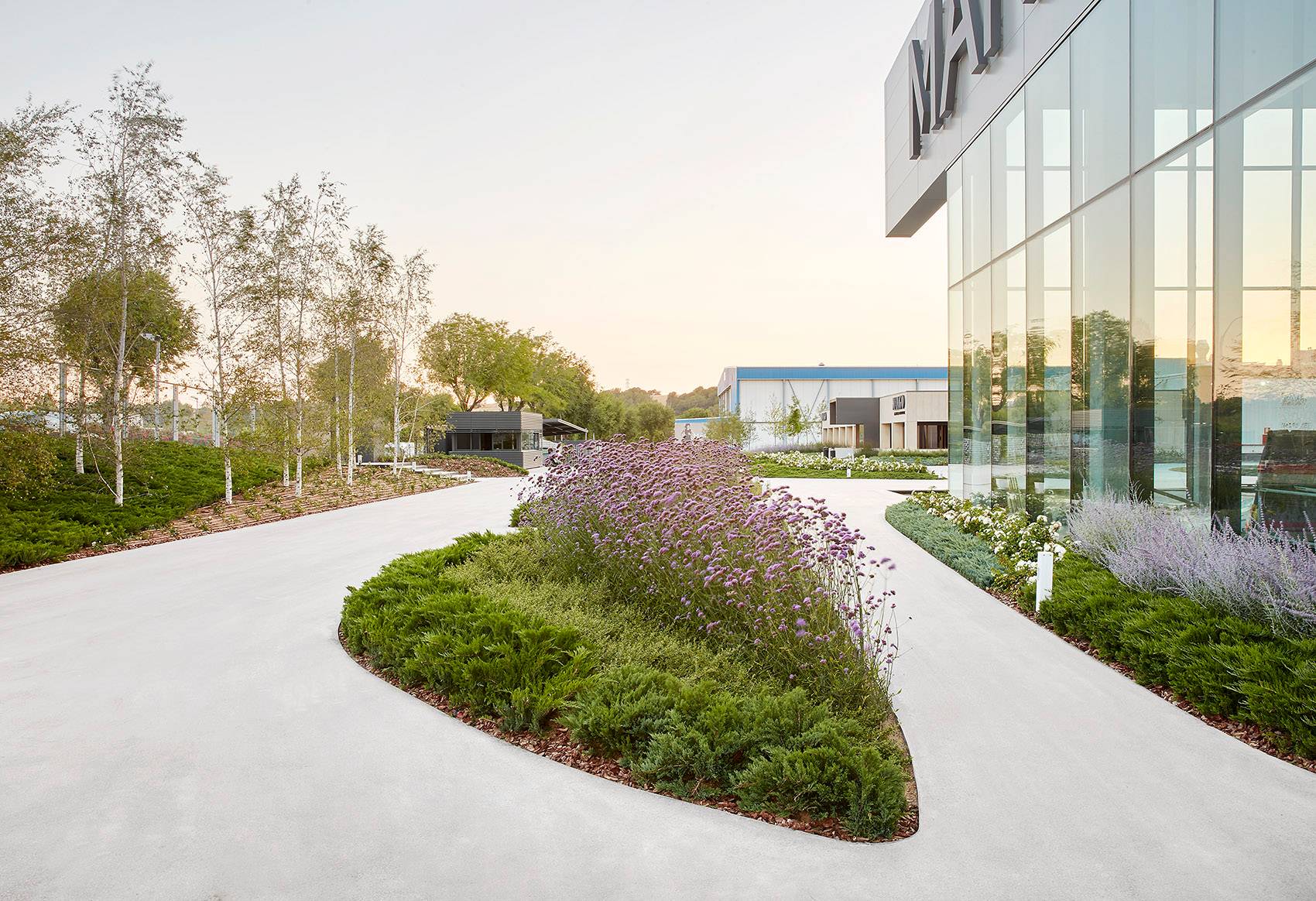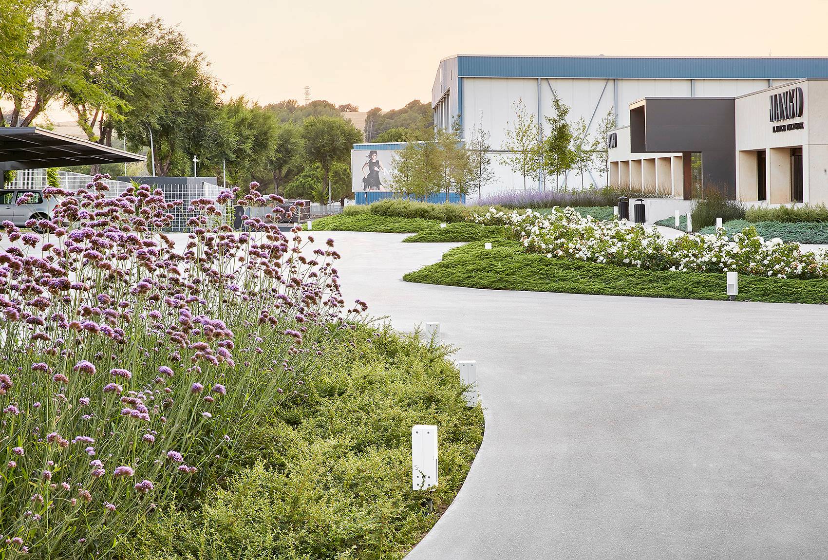 該景觀方案旨在將現(xiàn)有地塊和建筑物(The Hangar)與新的建筑物(The Line)互相聯(lián)系起來。設(shè)計力求在兩棟建筑物中間創(chuàng)造一處方便交通的間隔空間,同時也作為一處舒適宜人的綠地,供員工休息。