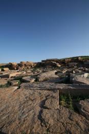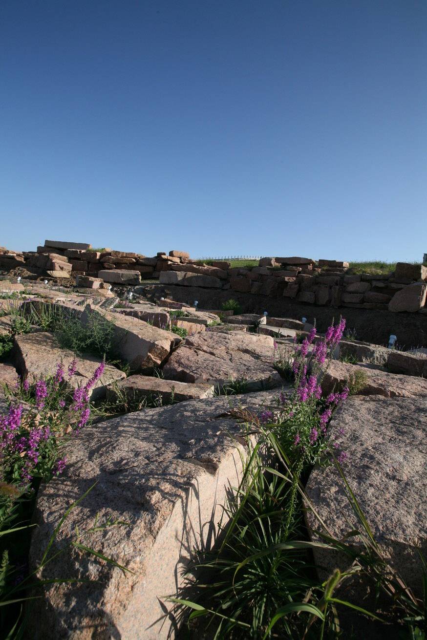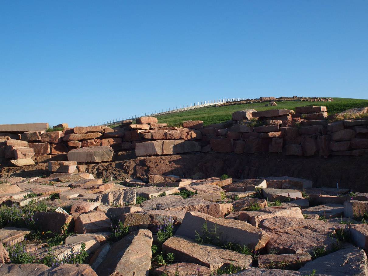 ▼點綴在滿山的狼尾草、針芧、馬蘭等旱生地被及遍布山體的散置石塊