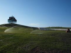 其次,利用場地特有的起伏高差,分別沿主要的山脊與山谷設(shè)置了兩條漂浮蜿蜒的金屋板條帶,在寓意博爾塔拉蒙古自治州特有的迎客方式——“哈達(dá)”的同時,為無論從環(huán)島的任何一個角度均能感受到一地之主的熱情和豪爽。