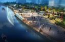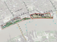Existing post-industrial factory buildings and abandoned docks cut off the walking line along the river and existing flood control walls on both sides of Huangpu River are blocking the view and access to the waterfront. As a design solution floodwalls were pushed inside the site creating a continuous waterfront promenade adding a green open space fill the level change creating various function and experiences to the people and giving a different accent enhancing the architecture as its background.