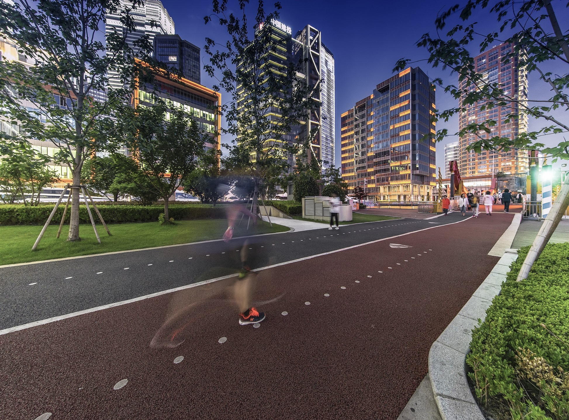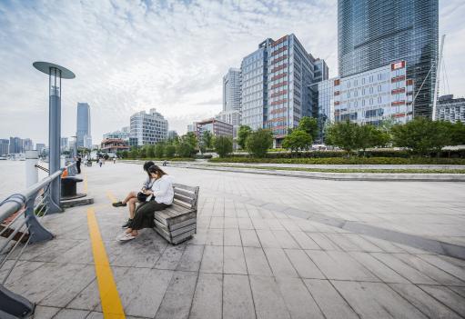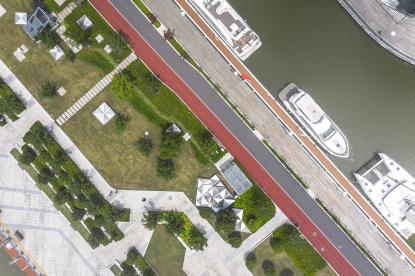 The North Bund riverfront was built and completed on July 2017, establishing the 3-Slow System is an important milestone for the Hongkou District riverfront, were user experience the transition from the green spaces encloses and opening to the waterfront, continuous pedestrian trail connecting to open spaces. With its 2.5 km linear long activity spine people can walk, ride bikes and jog along the Huangpu Riverfront, promotes and create a healthier lifestyle.