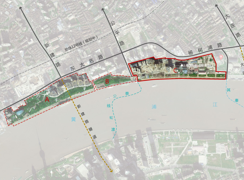 項(xiàng)目位于上海市虹口區(qū)北外灘濱江綠地C區(qū),匯山地塊,東起秦皇島路輪渡站,西至公平路輪渡站,北側(cè)為在建的上海國(guó)際航運(yùn)服務(wù)中心項(xiàng)目及擬建的大連路泵站搬遷工程,南臨黃浦江。基地用地面積: 42,785 m2 其中碼頭及觀景平臺(tái)面積:18,186m2。