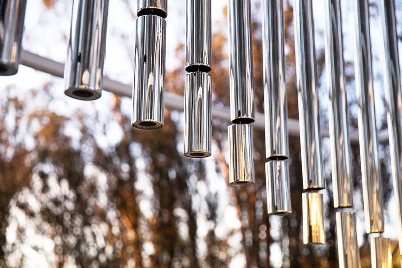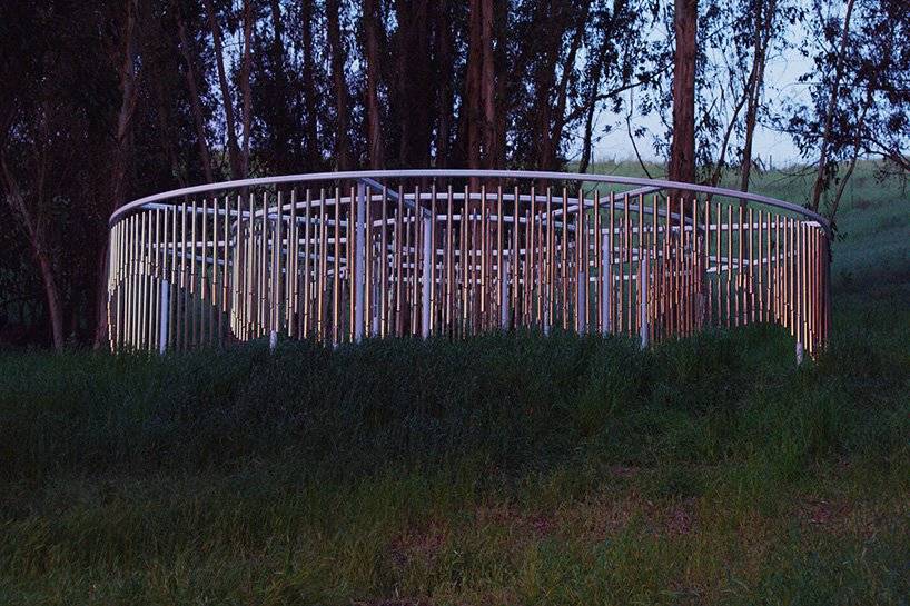 作為一個能與周邊環(huán)境進行互動的藝術(shù)裝置,希望通過感受不同時間內(nèi)自然環(huán)境變化帶來的體驗,研究時間的流動性。設(shè)計師與大自然合作演奏的音樂,讓我們體驗并關(guān)注自然帶給我們的禮物。