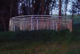 不銹鋼管懸浮在三個同心圓內(nèi),不同的鋼管長度導(dǎo)致鋼底部連接成一個波浪形。整個裝置直徑45英尺(約13.7米),高約人體高度的兩倍。