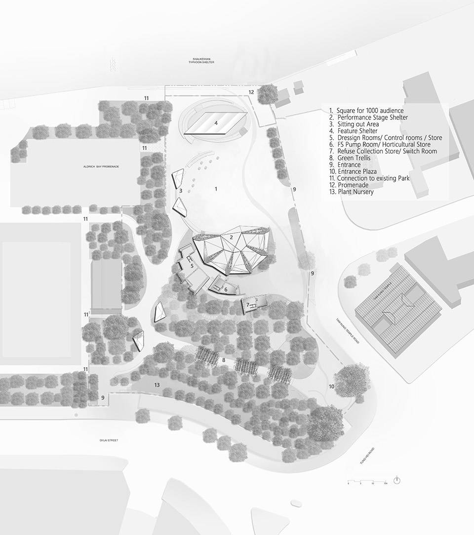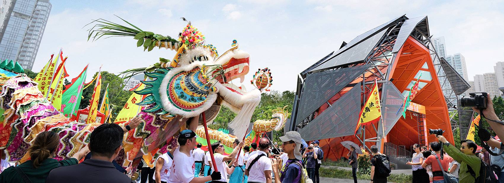該廣場與譚公廟相鄰,曾是一塊偏僻的濱水區(qū),土地貧瘠且難以到達(dá),荒蕪而人跡罕至。從城市設(shè)計(jì)的角度出發(fā),街道文化廣場增強(qiáng)了該地區(qū)的滲透性和連通性。它注定會(huì)成為各行各業(yè)的熱門場地,包括本地的譚公誕慶典和舞龍舞獅表演,另外還包括流行音樂會(huì)、粵劇演出、學(xué)校活動(dòng)和狂歡節(jié)等。街道文化廣場通過“改變傳統(tǒng)”,引入公共空間,振興和激活了港口及周邊環(huán)境,使其成為一個(gè)充滿活力的地方。