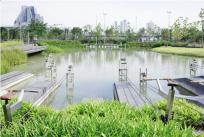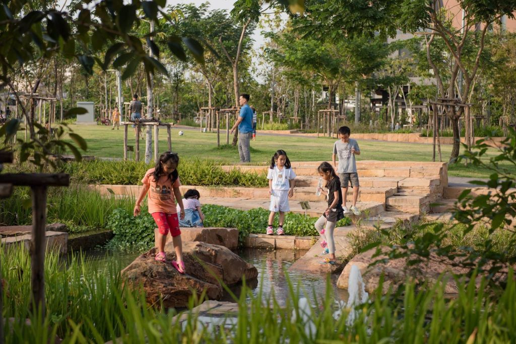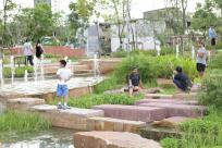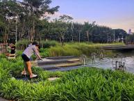 濕地對(duì)雨水進(jìn)行過濾,也為孩子們的探索創(chuàng)造空間。雨水也會(huì)聚集在沿著公園的四個(gè)相連的濕地中,其中包括一連串的水壩和池塘。這片濕地以當(dāng)?shù)氐乃参餅橹?,它們可以凈化和過濾水,并為孩子們提供游戲空間?!昂⒆觽兿矚g在這些地方玩耍,在那里他們可以直接與自然接觸,”Voraakhom說。