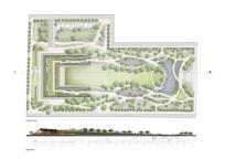 公園向外開放,擁有充滿活力的邊界。它包含多個(gè)景觀空間,如香草園、冥想步道、閱讀區(qū)等,它位于過濾池旁,與中心草坪相連。