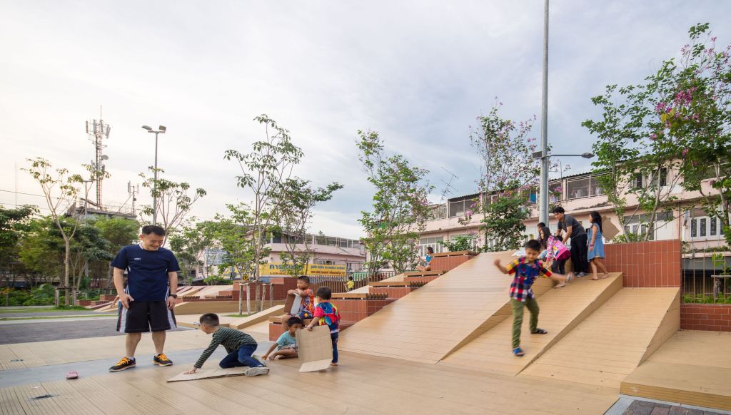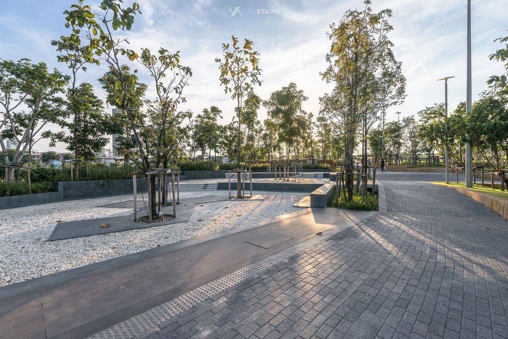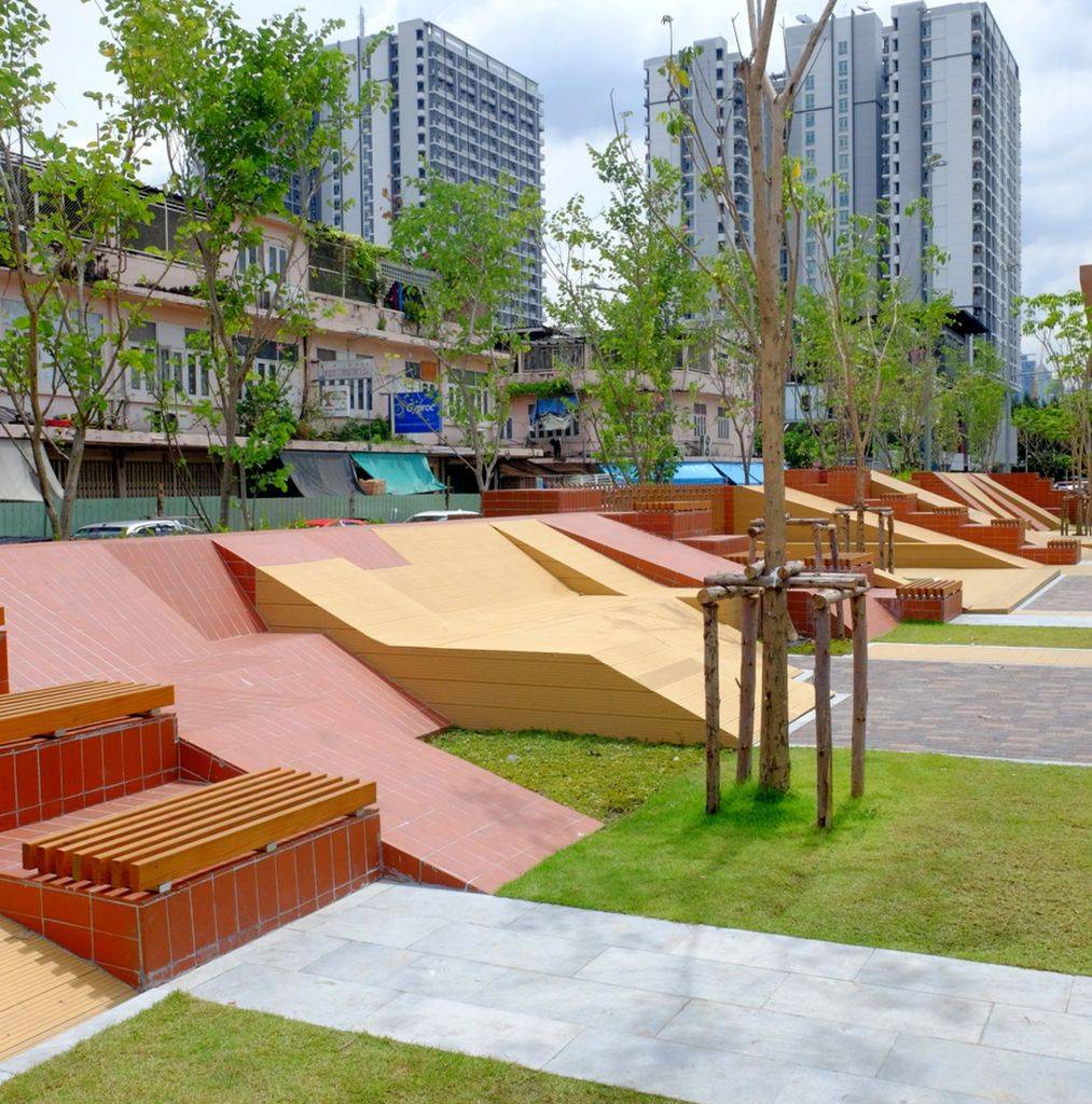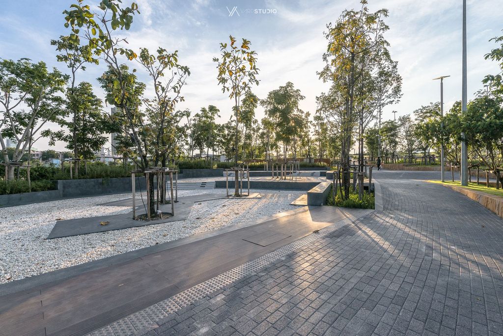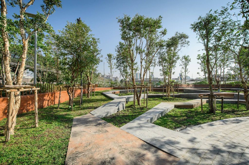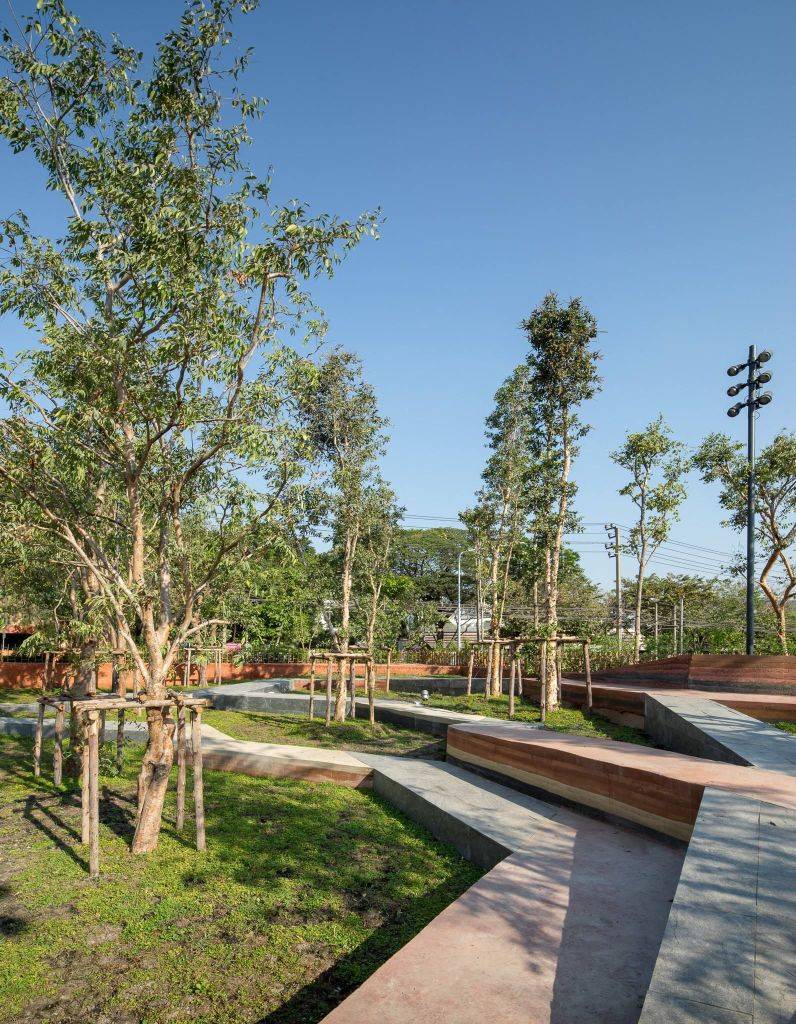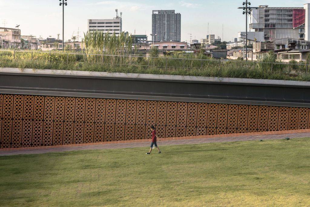 公園也是大學(xué)生們消磨時(shí)間的好去處。公園兩側(cè)有八個(gè)室外座位區(qū),以及一個(gè)香草園和圓形劇場(chǎng)?!爸炖」Υ髮W(xué)是這座城市最大、最古老的大學(xué),相當(dāng)于曼谷的哈佛大學(xué),”Voraakhom說,“因此,公園需要為大學(xué)社區(qū)服務(wù),為畢業(yè)典禮這樣的大型活動(dòng)提供場(chǎng)地,也為周邊社區(qū)提供娛樂和鍛煉的空間?!?/p>