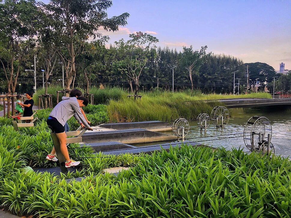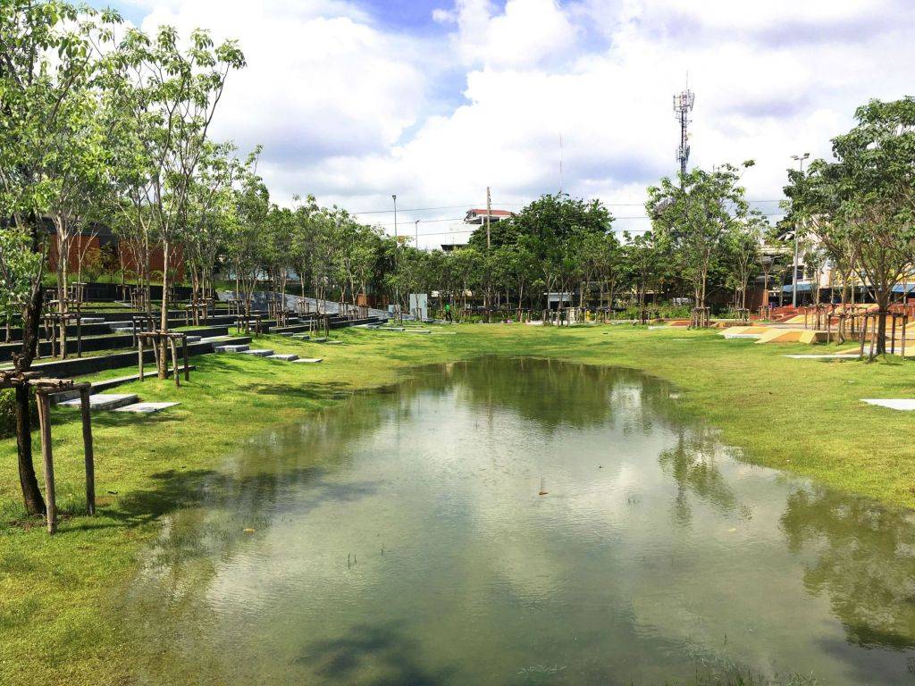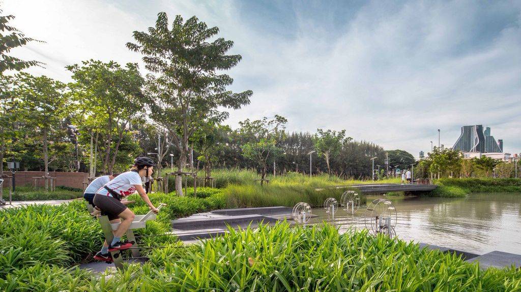 當(dāng)然,僅靠一個(gè)公園無法阻止整個(gè)城市的洪水泛濫,畢竟它占地11英畝,僅占曼谷總面積的0.003%。但這是一個(gè)開始?!拔艺J(rèn)為朱拉隆功百年紀(jì)念公園為人們提供了一個(gè)機(jī)會(huì),讓他們更多地思考這個(gè)城市以及我們能做什么,”Voraakhom說,“我們?cè)鯓硬拍苷业礁嗫椎慕鉀Q方案?還可能包括修復(fù)運(yùn)河,在建筑物和城市農(nóng)場(chǎng)上建造更多的綠色屋頂(暹羅屋頂農(nóng)場(chǎng)花園 Siam Green Sky),以及恢復(fù)稻田的活力等措施?!?br/>