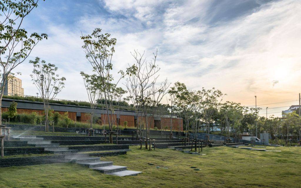 這個(gè)高達(dá)10.5米的綠色屋頂是設(shè)計(jì)師Voraakhom在整個(gè)公園中最喜歡的地方,她說:“曼谷是一個(gè)平坦的城市,當(dāng)你去公園的時(shí)候,幾乎不會(huì)感受到海拔的升高。但在這里,當(dāng)你走上綠色屋頂,你可以在全新角度看到城市的景色,這是一個(gè)非常不同的體驗(yàn)。盡管我在這里出生,并在這里生活了一輩子,但從這里看到的曼谷仍然令人驚訝。
