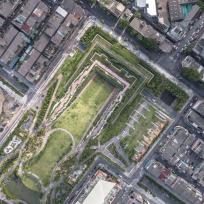 公園巧妙地利用了重力的力量,全園建設(shè)在3度的斜坡上,雨水和洪水通過重力作用,從公園的最高點(diǎn)——綠色屋頂流向公園另一端的最低點(diǎn),并最終進(jìn)入蓄水池。