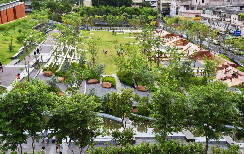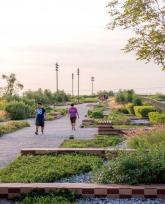 朱拉隆功大學(xué)百年紀(jì)念公園是曼谷市抗洪水項(xiàng)目之一,這一占地11英畝的綠色空間能夠容納一百萬加侖的雨水。公園由位于曼谷的景觀設(shè)計(jì)公司Landprocess主持設(shè)計(jì),以解決周邊社區(qū)的洪水問題。