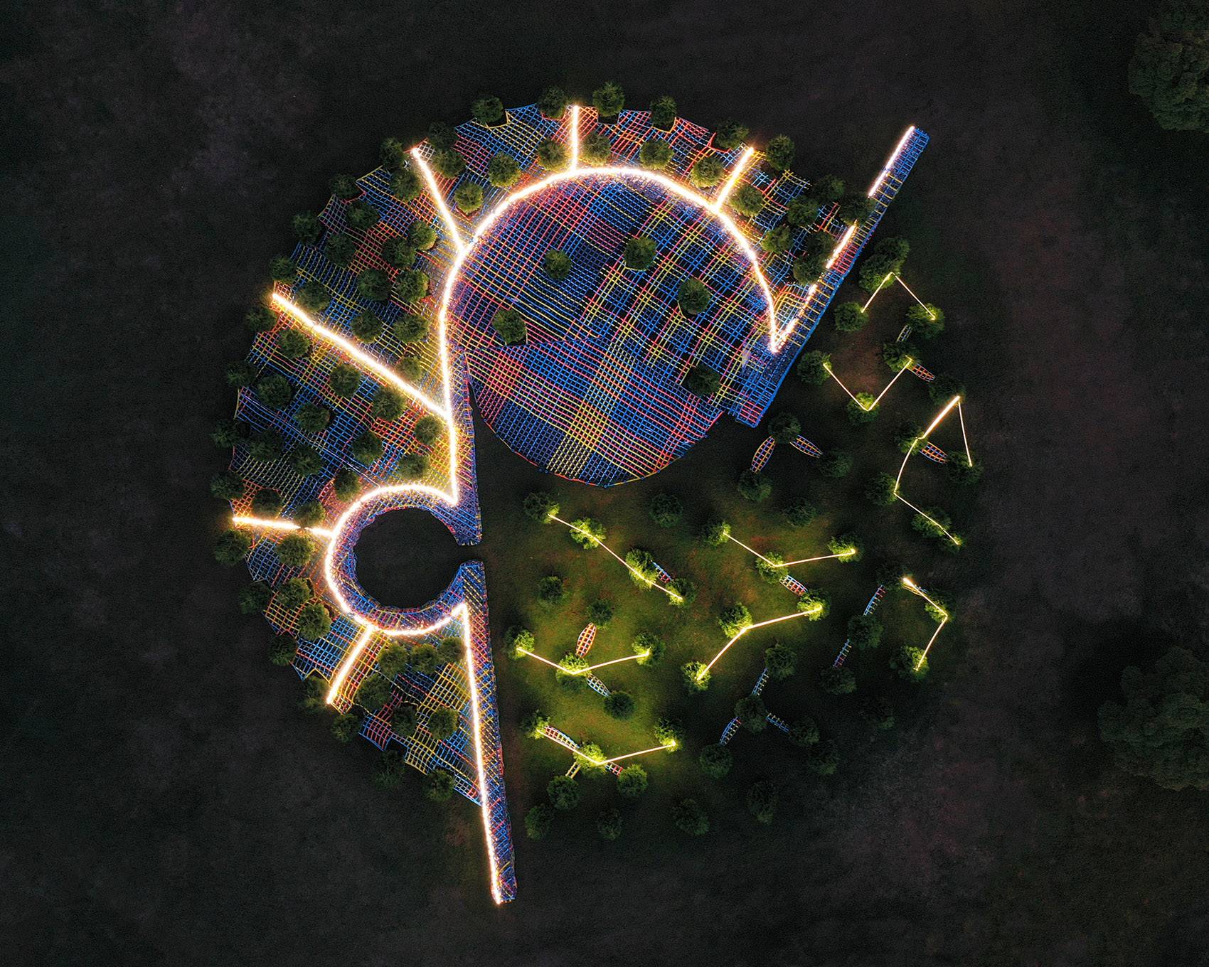 本裝置項目立足于環(huán)境保護和材料選擇,暫時性地將當?shù)氐慕ㄖ途坝^元素與特色鮮明的現(xiàn)代建筑結(jié)合在一起,重新組織出一個新地標,為人們提供了一種令人難忘的空間體驗。